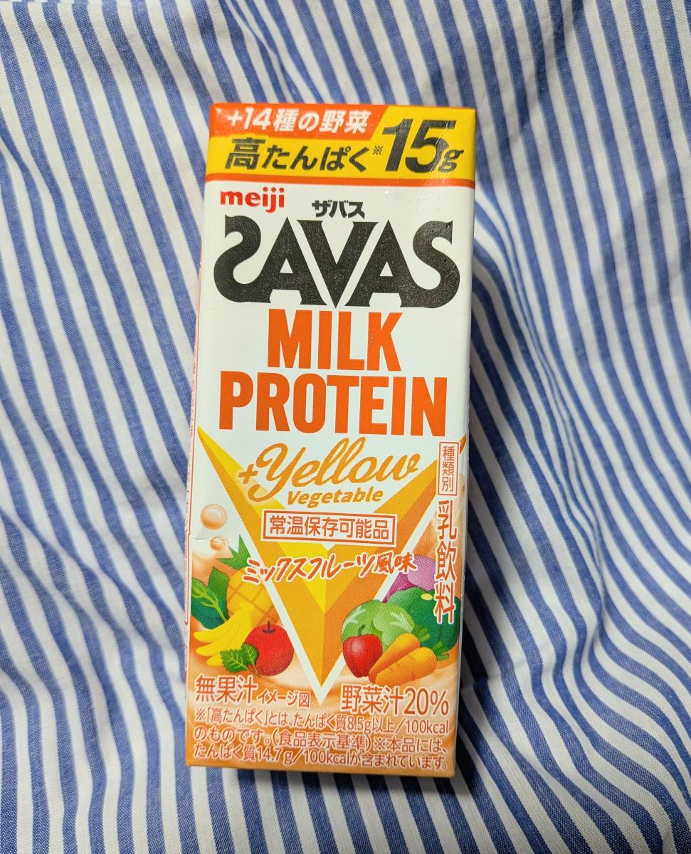 ミルクプロテインに野菜果汁が入って、おいしくプロテインが摂取できそうです。