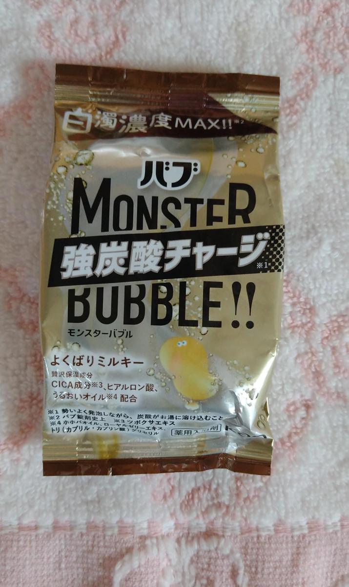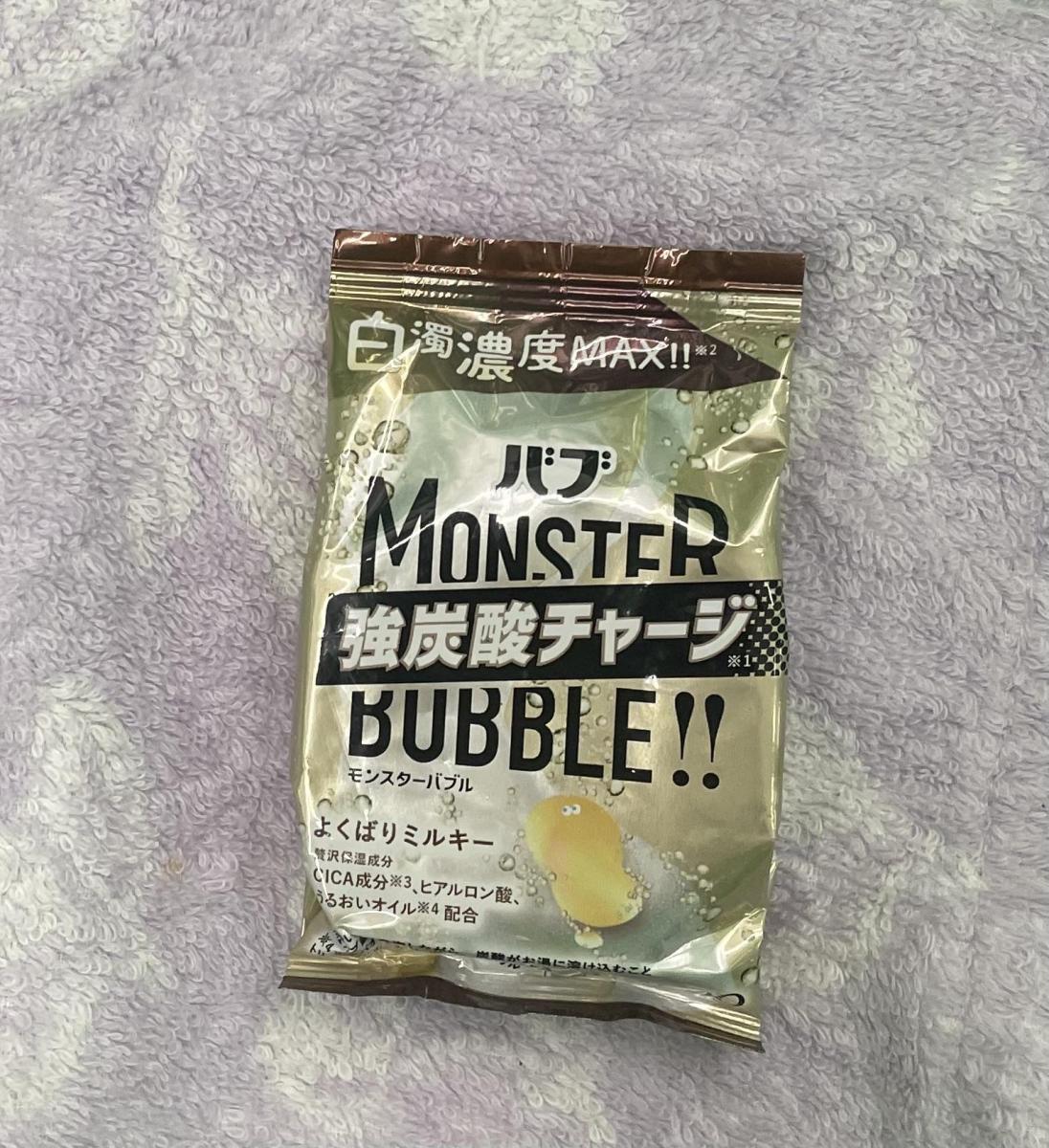 「モンスターバブル」シリーズならではの大きなタブレット。強炭酸の温浴効果はもちろん、贅沢保湿成分を配合しています。