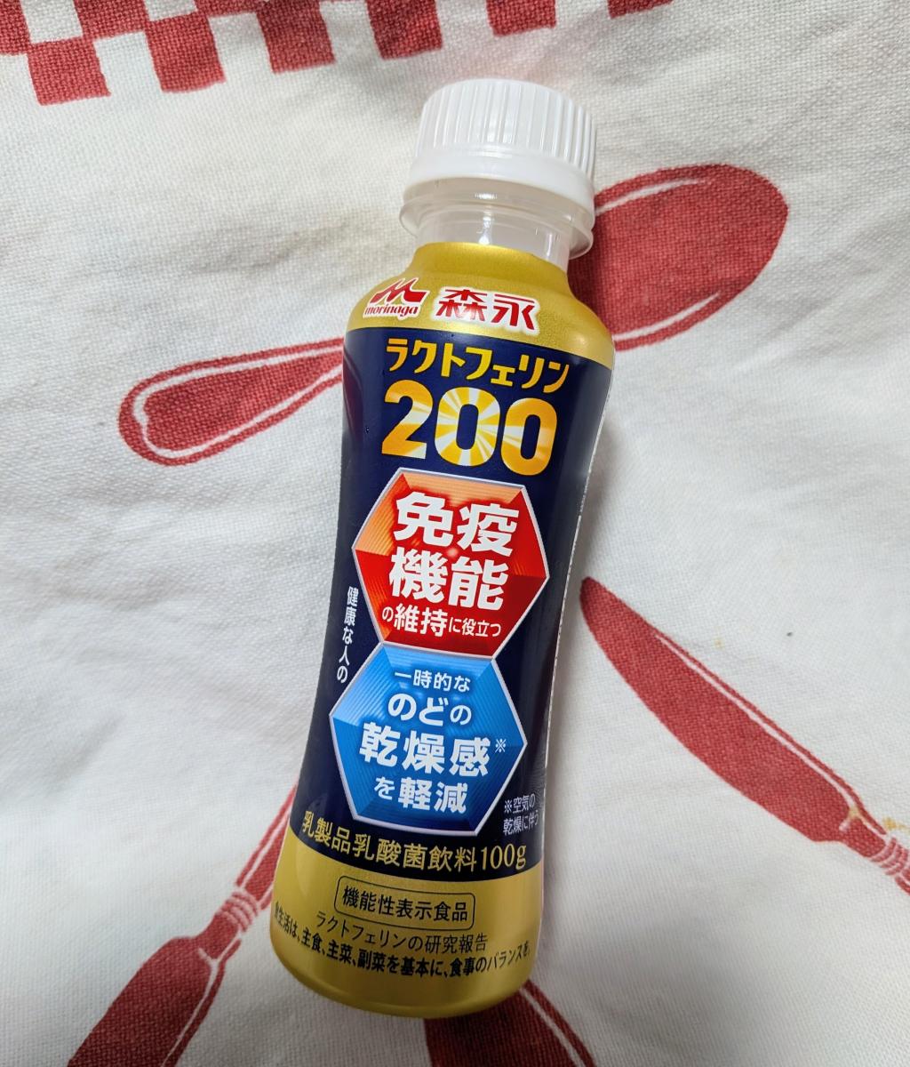 免疫機能をうたった乳酸菌飲料は、わりとよくある気がします。このラクトフェリンのドリンクは、免疫機能プラス、一時的なのどの乾燥感を軽減、と書かれています。これからの時期、のどの乾燥には悩まされがちなので、ありがたいです。