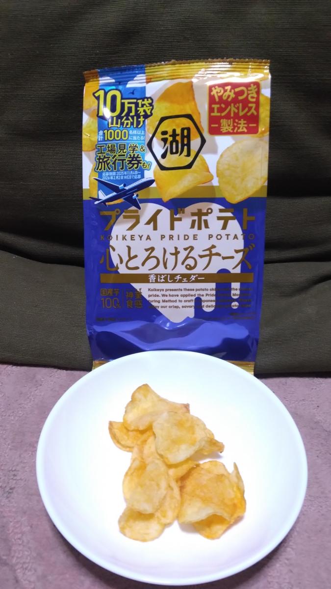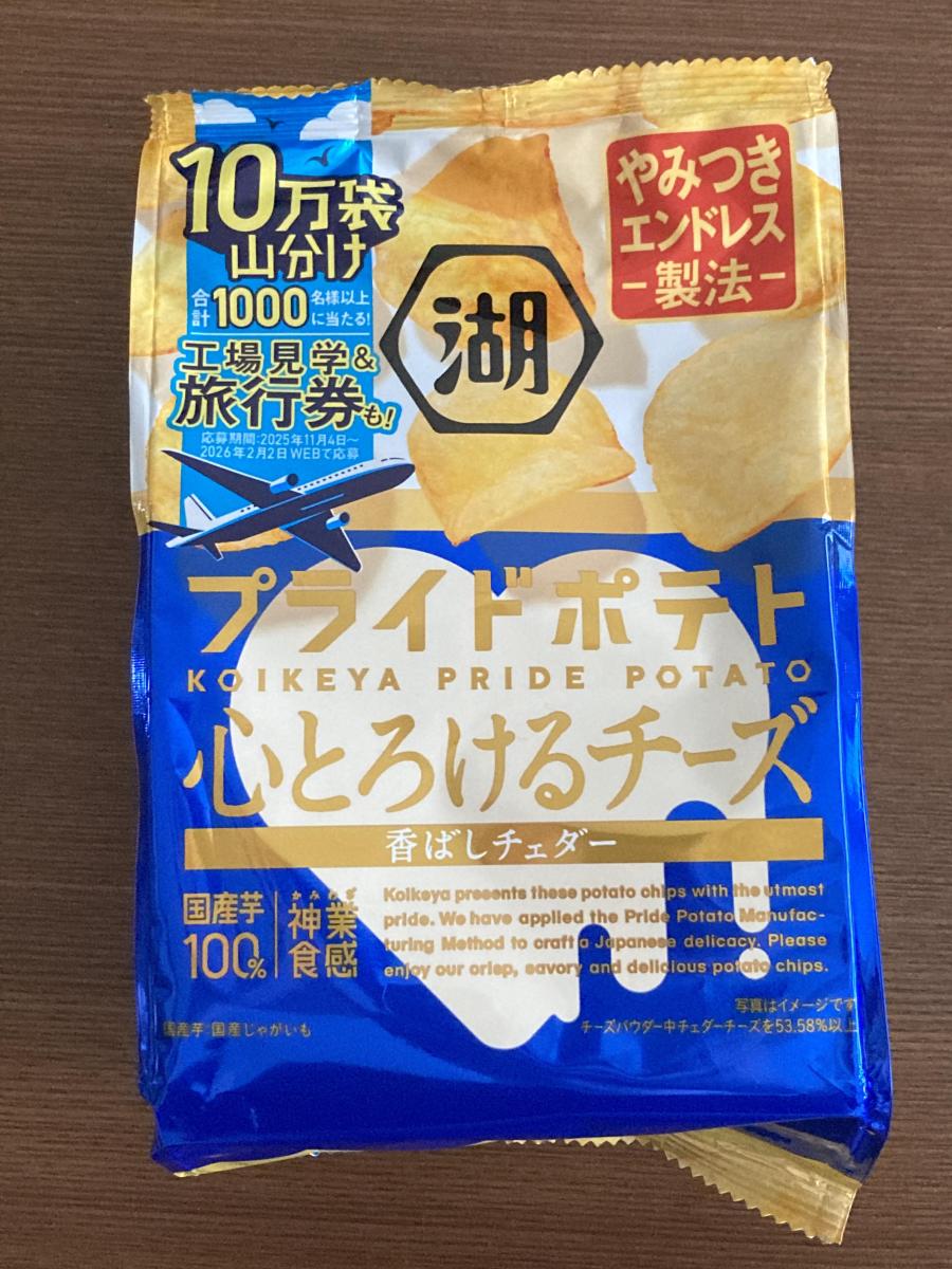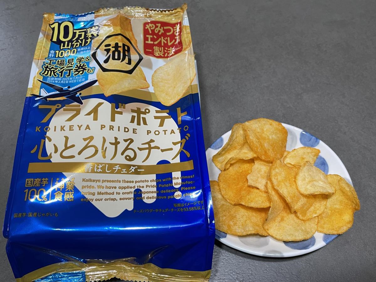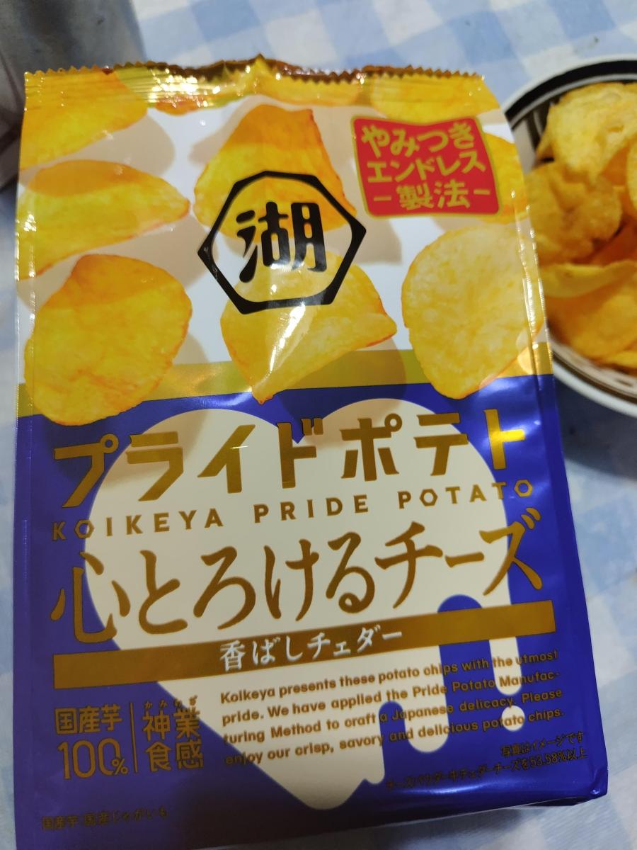 心とろけるチーズという、そそられるタイトルのプライドポテトに、目が留まりました。香ばしチェダーとも書かれていたので、買ってみました。