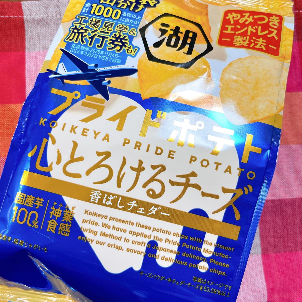 濃厚チェダーの香りが袋を開けた瞬間から攻めてくる一枚です。コク深い旨みがポテトの甘みと重なって、つい手が止まらなくなるタイプです。凄く美味しかったので、リピートしたいです。