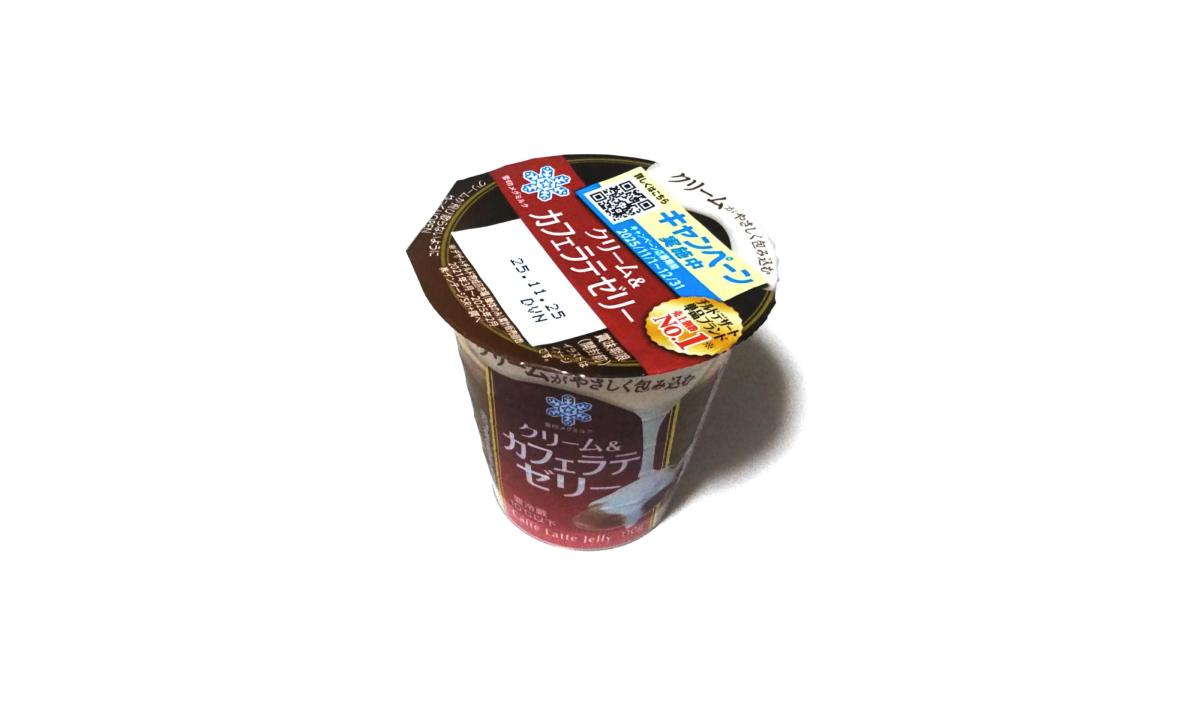 クリーム&カフェラテゼリー味が気になり購入してみました。弾力があってぷるんぷるんで、つるんとしたゼリーに、濃厚なクリームが良くからんでおいしいです。コーヒーのいい香りがしますが、苦味は全くありませんでした。コーヒーゼリーは数あれどカフェラテゼリーって珍しくて、食べやすい味わいでした。定番化してほしいです。