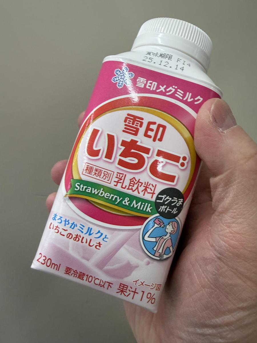 正直言ってものすごく人工的な味で、今どきこんな味でいいの?という感じ。いちごミルク味をつけました、とても言うような絵に描いたような演出たっぷりの味で、ナチュラル感はまったくない。が、この「絵に描いたような」というのが昭和感のようなものを感じさせてくれ、こういういちごミルク味は昔よく口にしたよな、という懐かしさを私のような世代の人はきっと感じるんじゃないかと思う。実は購入する段階でパッケージの雰囲気からそういう想定もしていたのだが、ということはまんまと雪印の戦略にハマったということかな??