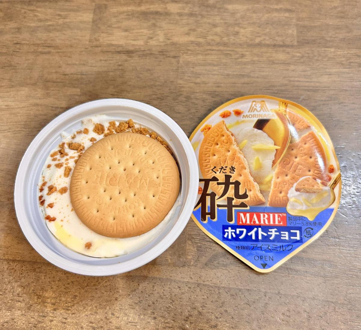 おいしそうなのかよくわからなかったけど、マリーが好きだしおもしろそうだと思って買いました。食べてみると、パリパリのホワイトチョコとクリーミーなバニラアイス、マリーのザクザクがおいしい!これはお勧めできます。