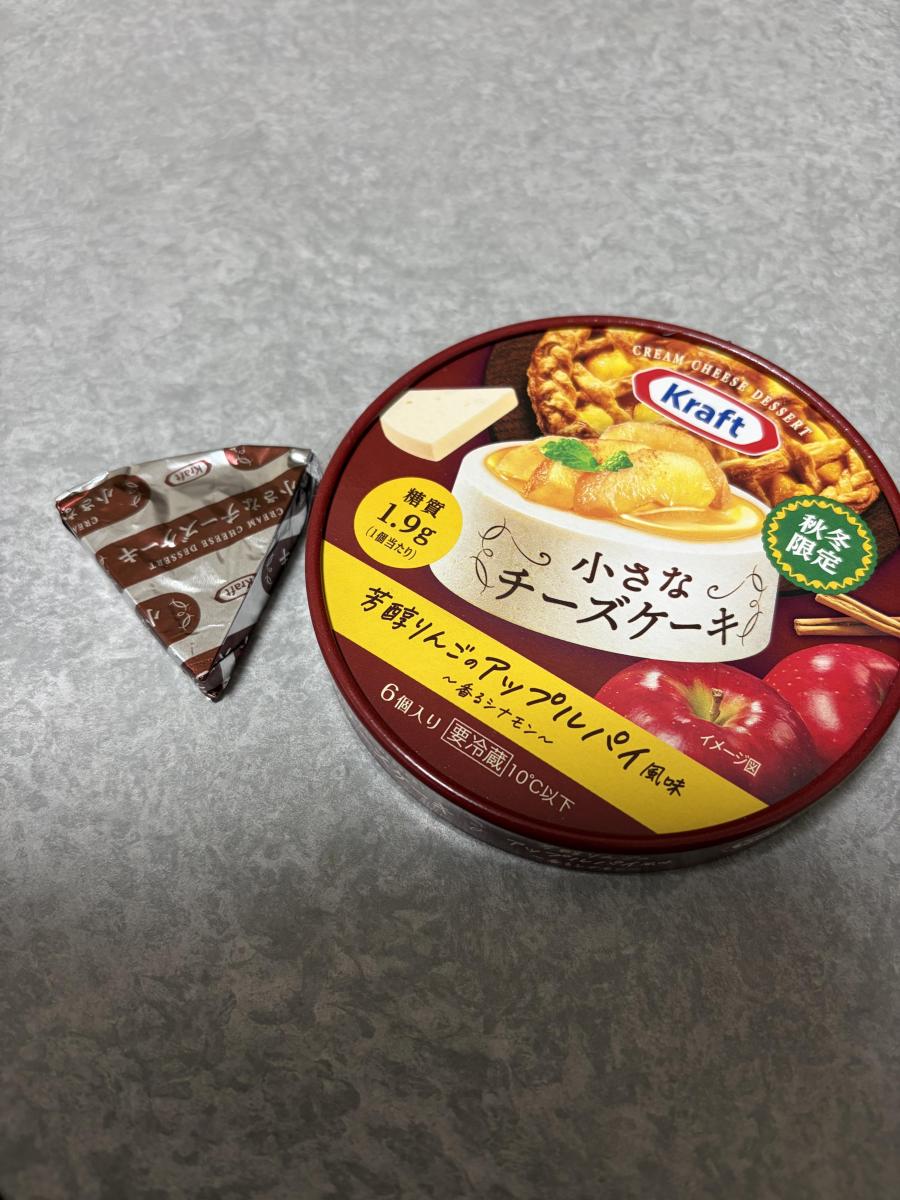 クラフトの小さなチーズケーキから、芳醇りんごのアップルパイ風味が出ていました。一口で食べるチーズケーキみたいなチーズは、おやつにもぴったりで、大好きです。アップルパイにも目がないので、すごく楽しみです。
