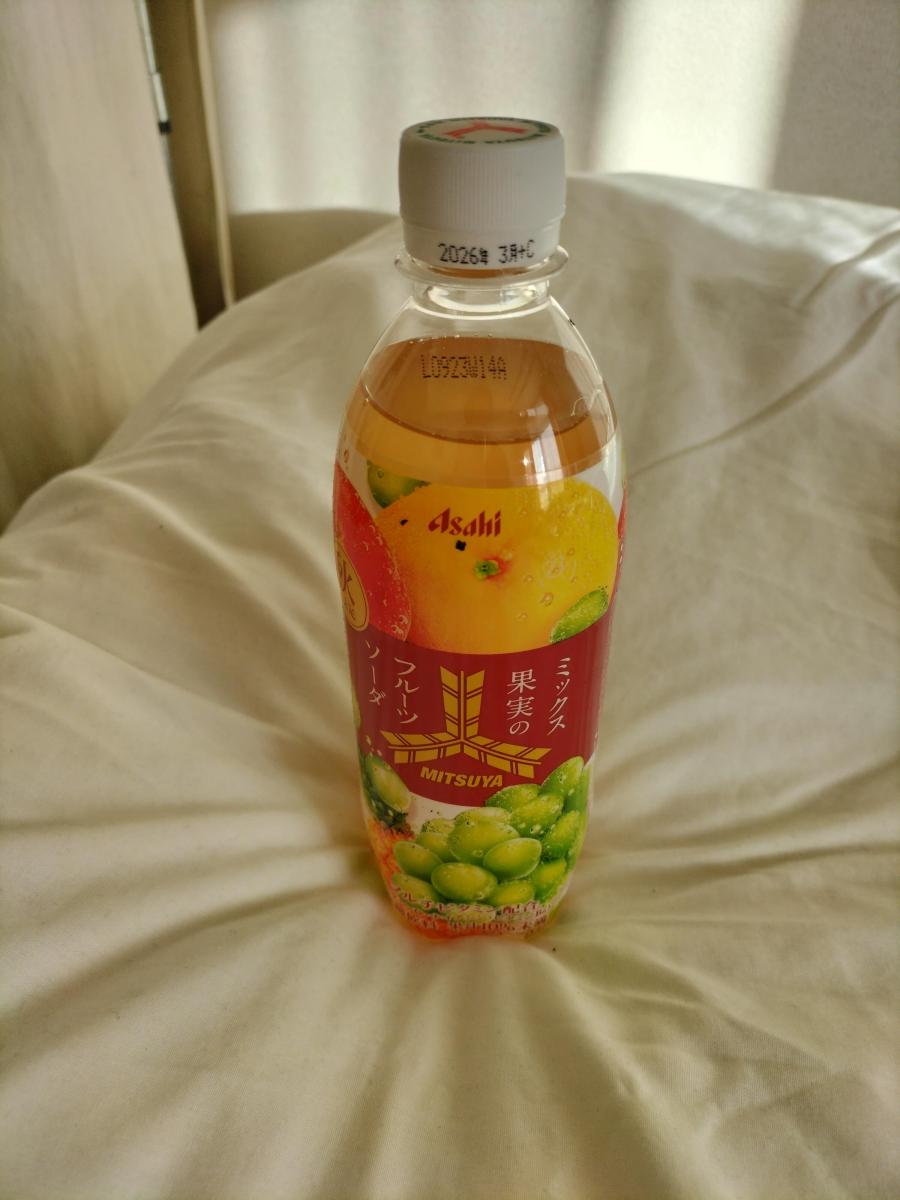 ミックス果実のフルーツソーダのネーミングに惹かれてどんな味か試したく購入してみました。フタ開けると、モモの香りがしました。マスカットの甘さとグレープフルーツの酸味と程よい苦みが感じられ、後味がすっきりとしており大変飲みやすい味わいでした。炭酸もそこまで強めに感じなかったので飲みやすかったです。