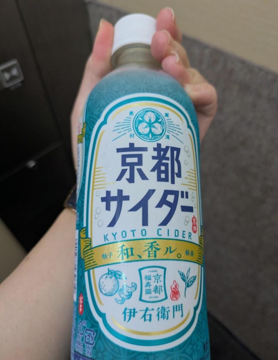 水色のラベルに京都サイダーと書かれていて、和のテイストのサイダーなんておもしろいなと思いました。