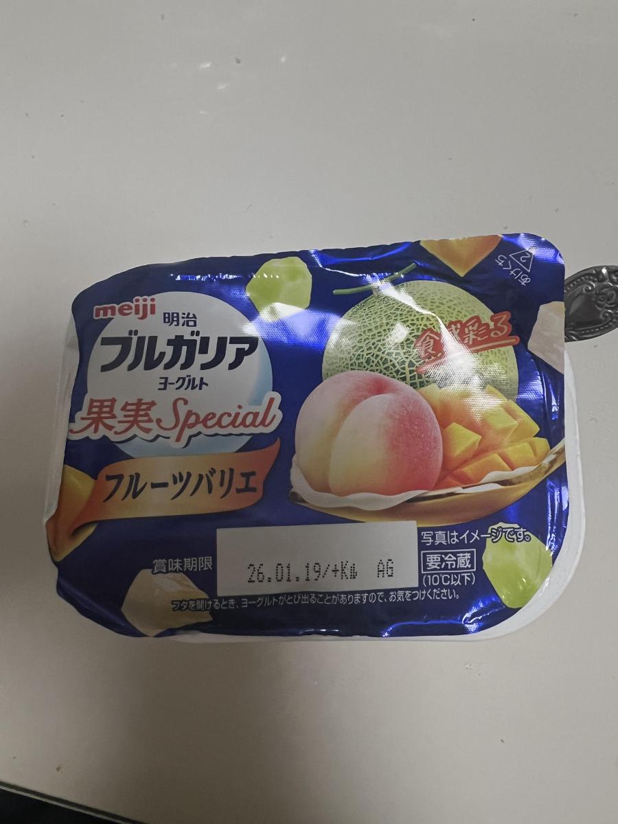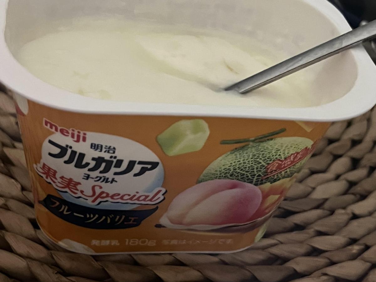 フルーツミックスのヨーグルトはあまり買わないのですが、こちらは白桃、メロン、マンゴー…と私の大好きなフルーツばかりが入っている模様。