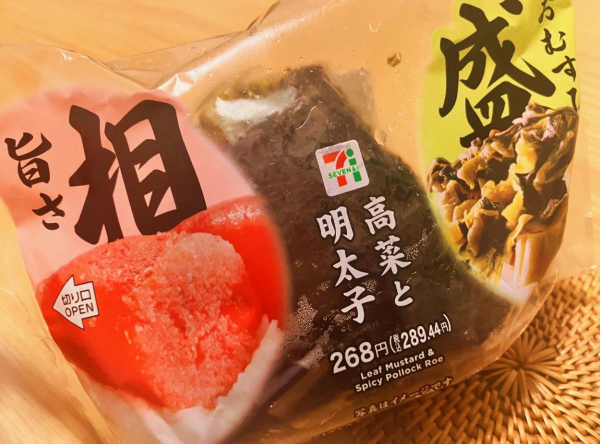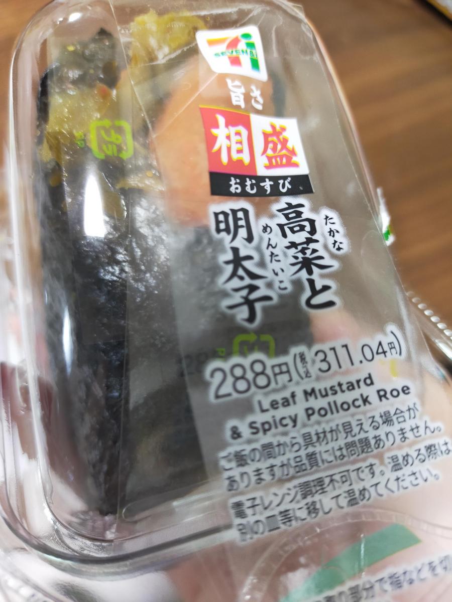パッと見ボリューミーで食べ応えありそうだと思い購入。セブンイレブンの旨さ相盛おむすび、高菜と明太子。博多グルメのオールスターですね。