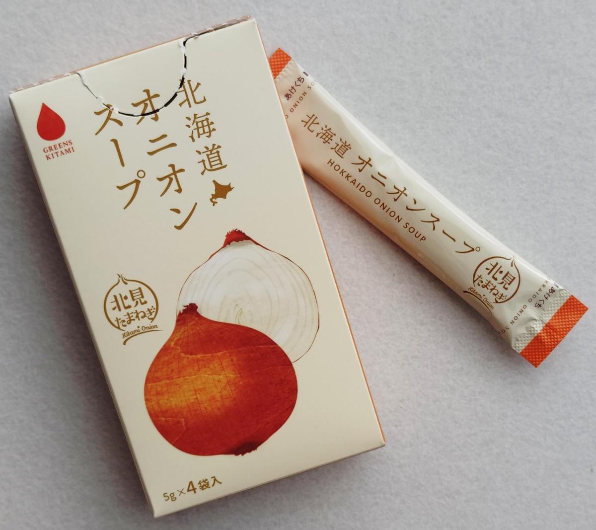 北海道の北見地方は玉ねぎ生産日本一。北海道オホーツクの加工食品メーカー・グリーンズ北見が製造しているこのカップスープは日本一の玉ねぎを使用したさらっとタイプの粉末スープ。オニオンコンソメスープってメジャーな食品メーカーからも色々出ていますが、このスープは粉末でさらさら。フリーズドライやクルトンなどのトッピングが入っている粉末タイプもいいけれど、むしろこの具材感のない粉末だけのタイプって、仕事中とかマグカップで飲むのにちょうどいい。北見産玉ねぎの甘みと旨みがぎゅっと詰まっている溶けやすい粉末スープは調味料のように使うこともできちゃう。ひと箱に粉末スティックが4本入りなんですが、何かと便利なのであっという間になくなります。