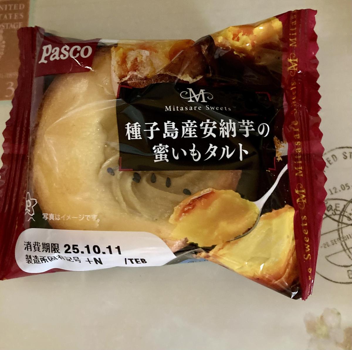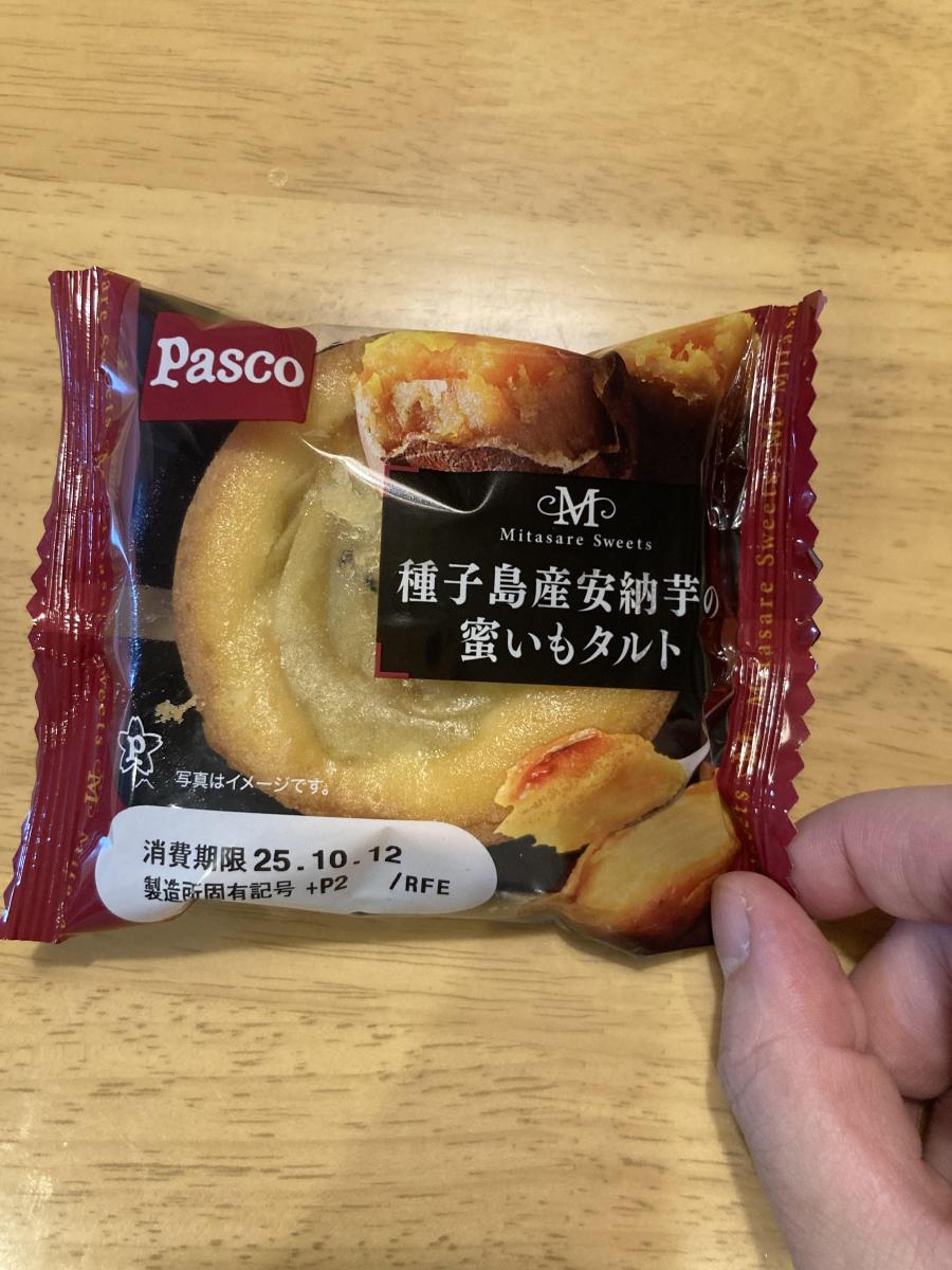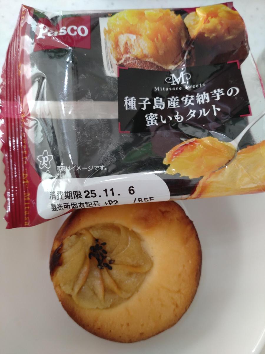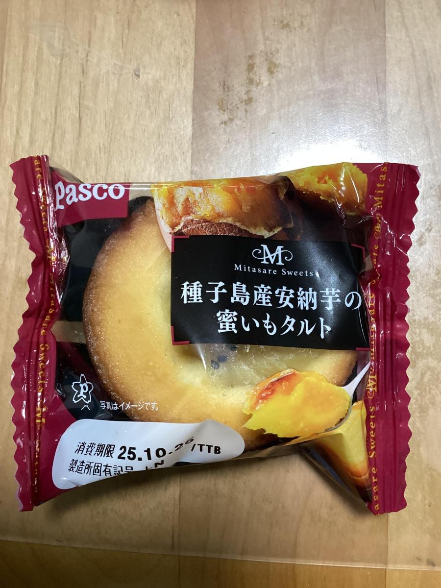 パスコのケーキ生地のタルトは、底はザクザクほろほろ、中はしっとり甘く、ボリュームがあっておいしいです。こちらはそのタルトの上に安納芋のペースト?クリーム?がのっていました。このお芋が濃厚で、しっかりさつまいもの風味と甘味を楽しめました。量がそこそこ乗っていたので満足感がありました。しっかりしたボリュームと甘さでお腹がいっぱいになりました。