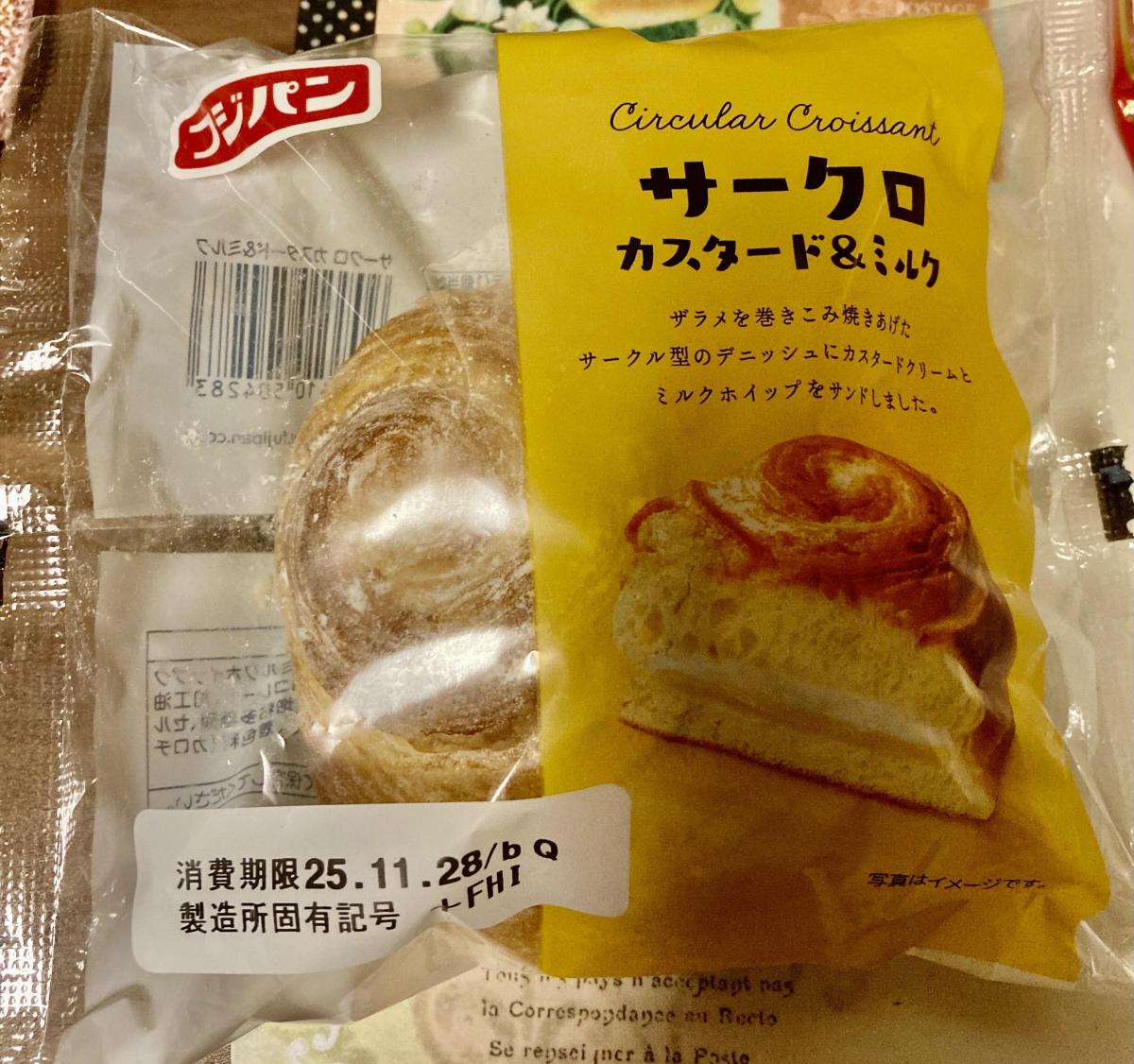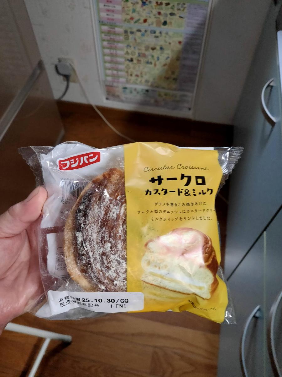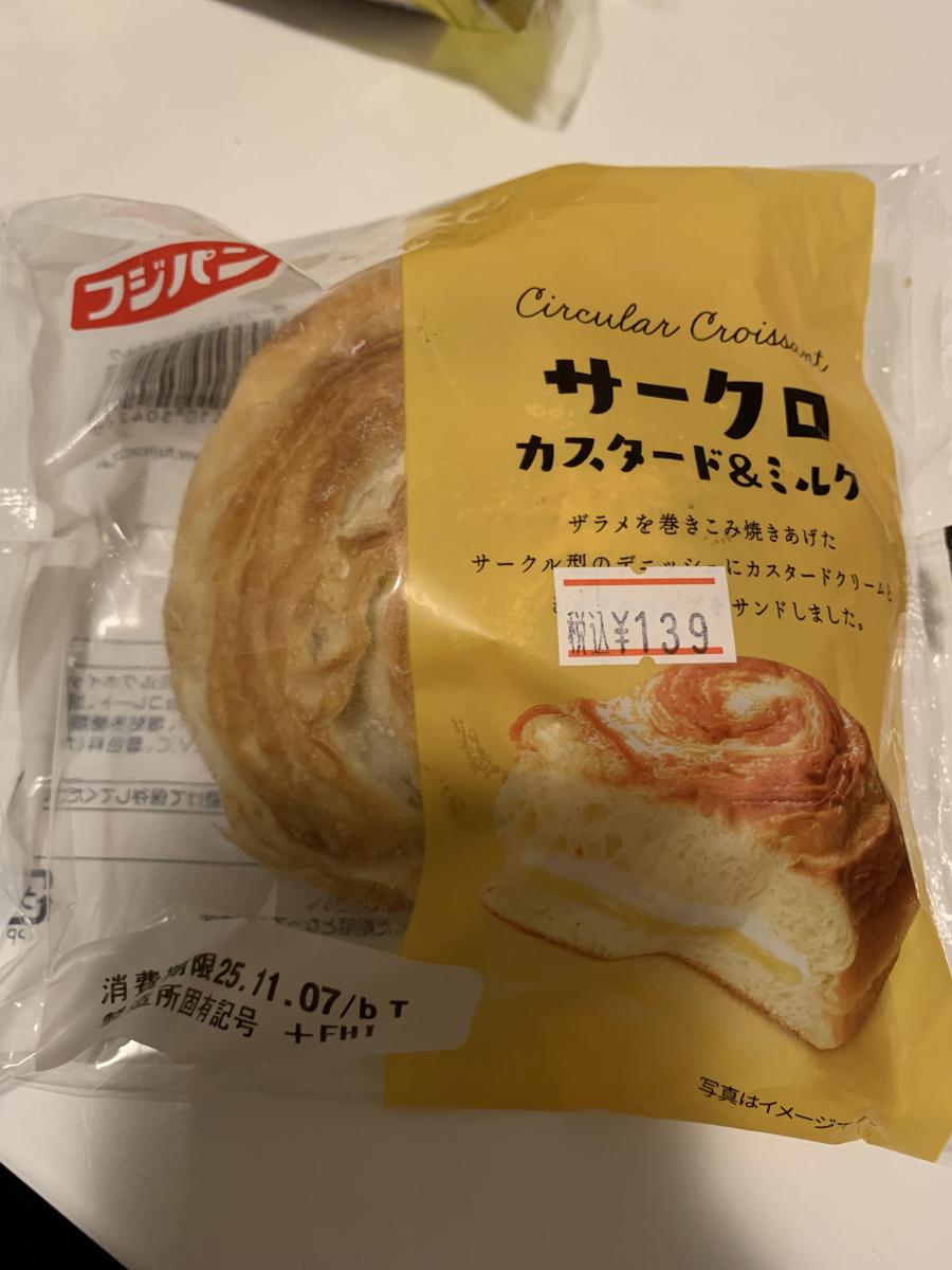 フジパンの「サークロ カスタード&ミルク」を購入しました。思った以上にボリュームがあり、袋から出した瞬間にふんわりとしたパンの香りが広がります。