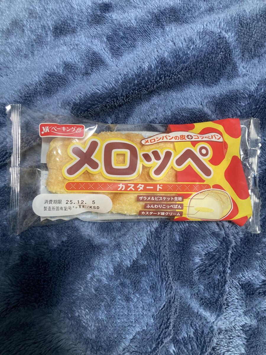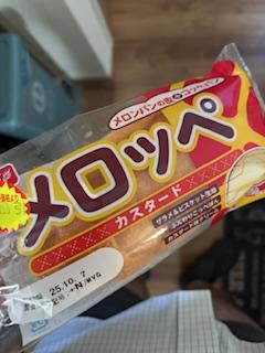 メロッペというシュールなネーミング、ハイカラなパッケージにひかれて買いました。メロンパンとコッペパンが合わさっているそうで、たっぷりのザラメがシャリシャリして美味しい。更に中にはカスタードクリームが入っていて、甘党の私には嬉しい組み合わせです。コッペパンのふわふわ感もあり、一度で三度楽しめる菓子パンです。