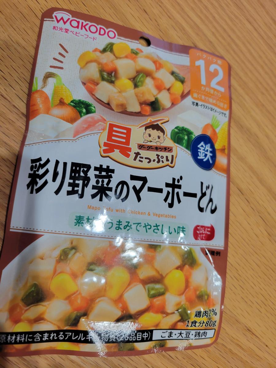 スーバーやドラックストアで100円ぐらいで買えて、月齢に合わせて固さや食材を調整したメニューも選べるので、この和光堂シリーズはよく利用しています。