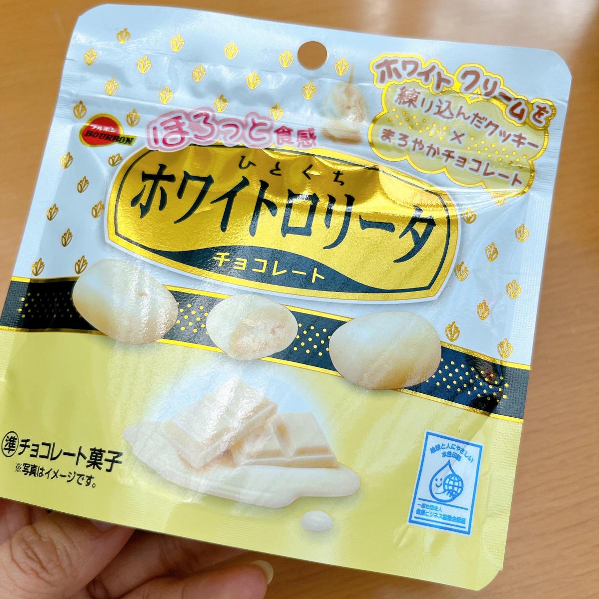 ホワイトロリータの一口サイズが出ていたので気になり購入してみました。ジップ式なので持ち運びもできて便利です。外側がつるっとしていて手につかないのがいいです。ホワイトチョコレートは甘さたっぷりですが、ホワイトチョコ好きにはいい感じです。中のほろっとした食感のクッキーも美味しかったです。