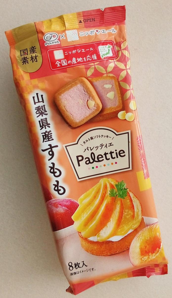 新作のパレッティエは、JA全農の産地応援プロジェクト「ニッポンエール」とコラボした山梨応援商品。山梨県産のすももと国産米粉を使用したしっとりクッキーにはホワイトチョコチップを練り込んで、さくさくバタークッキーで額縁のように囲んであります。今まで食べたパレッティエで一番果汁感を強く感じました。桃色に染まったソフトクッキーだけでなく、バタークッキーであるはずの外側までもすもも果汁で浸透しているようにクッキー全体がすもも一色。フレッシュなすももというよりはすももキャンディーやジャムに近く、すももの魅力がいっぱいです。