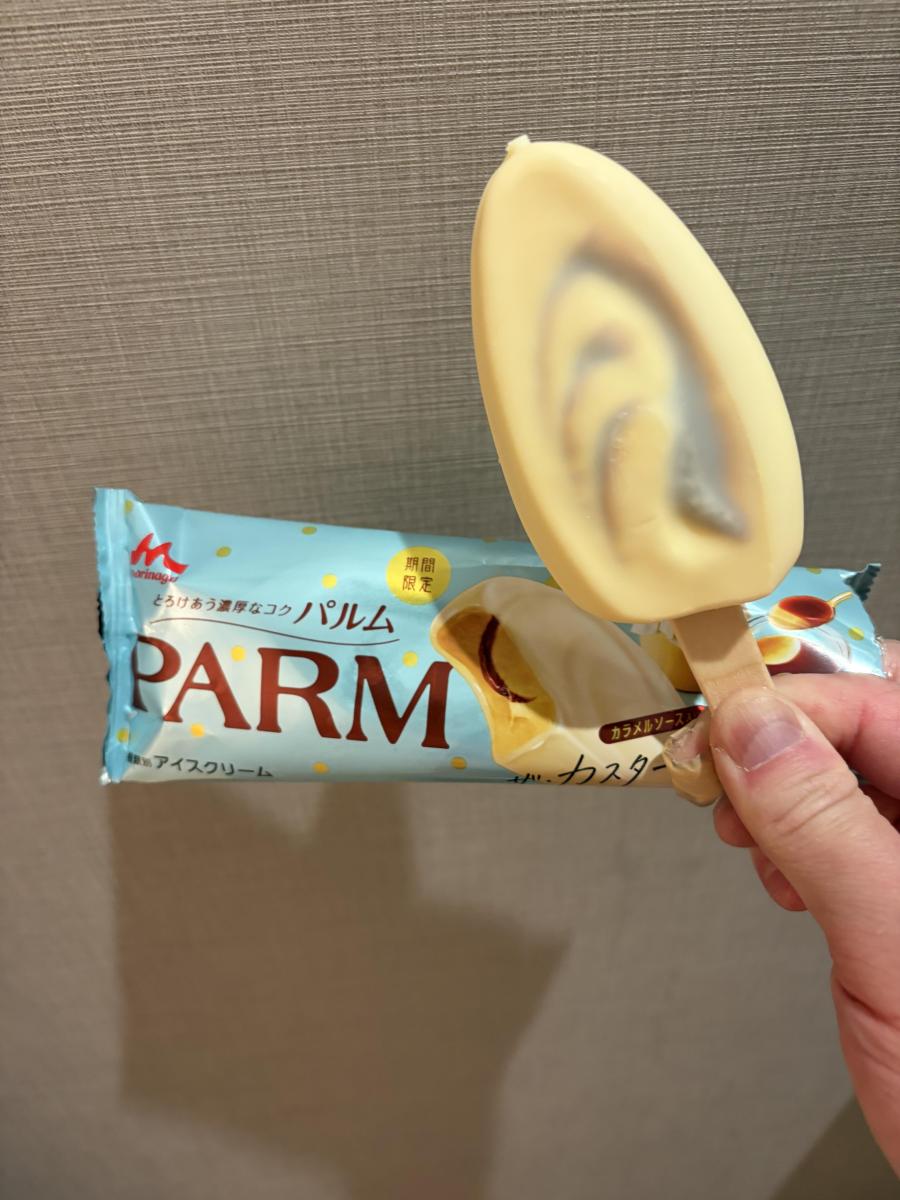 パルムの新作「ザ・カスタードプリン」を購入。普段からチョコとバニラの定番パルムが大好きなので気になっていました。アイスでこの価格は嬉しいですね。食べてみると、いつものパルムとは少し違い、やわらかな甘さのカスタードがふんわり広がります。プリンのような優しい味わいで、これはこれでとても美味しかったです。