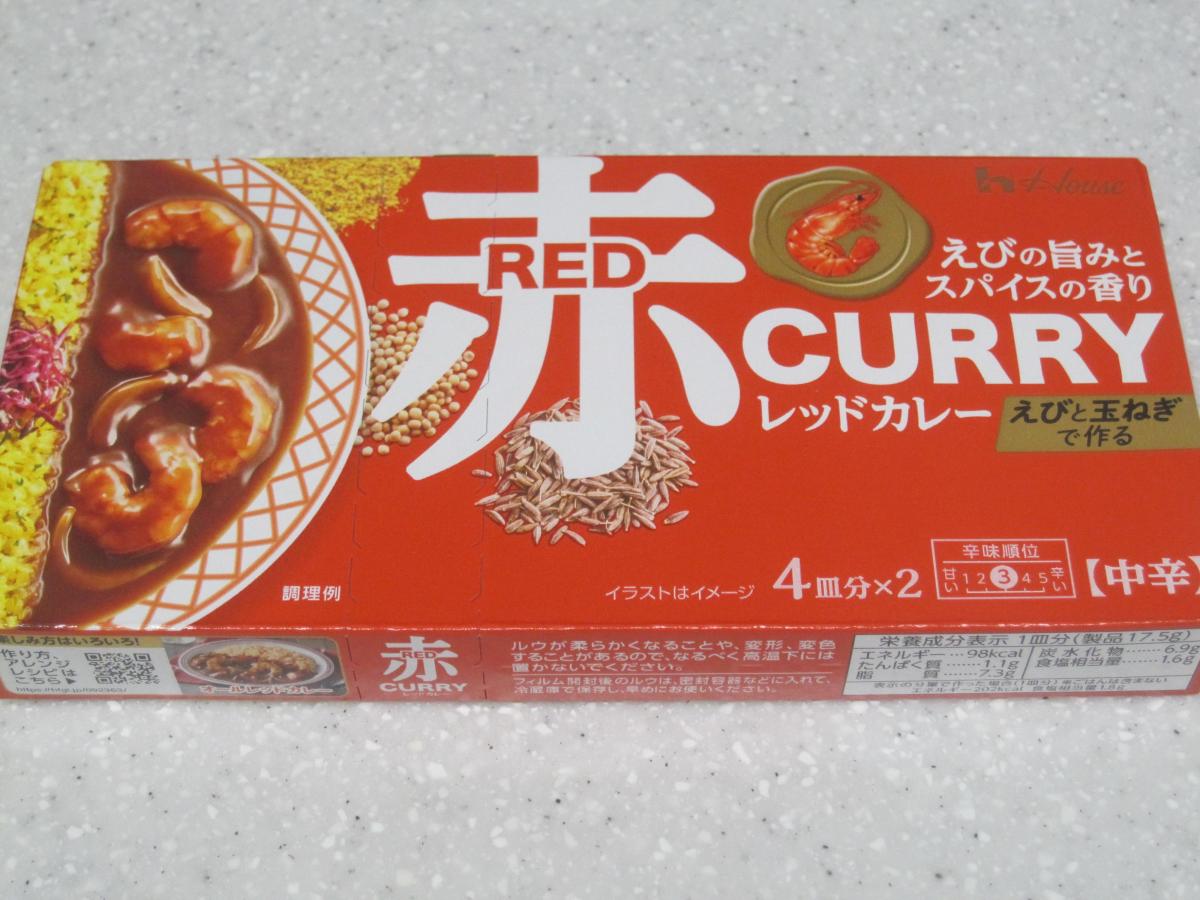 ちょっと変わったカレーをたまには、と言うことで買ってみました。見慣れぬ赤のパッケージが鮮やかで、エビが主役のカレールー。作るのは簡単、玉ねぎ刻んで、エビは皮と尻尾抜いて、丁寧につま楊枝で、背わたを取り除き、塩水で洗って臭みを消して煮込むだけ。普通のカレーとは風味や香りが違って、海鮮を思わせる香りに、赤みがかったカレーで、中辛といっても、それ程辛みは感じず、どこかエスニック調、普段のカレーじゃないの選ぼうかなって時にどうぞ。