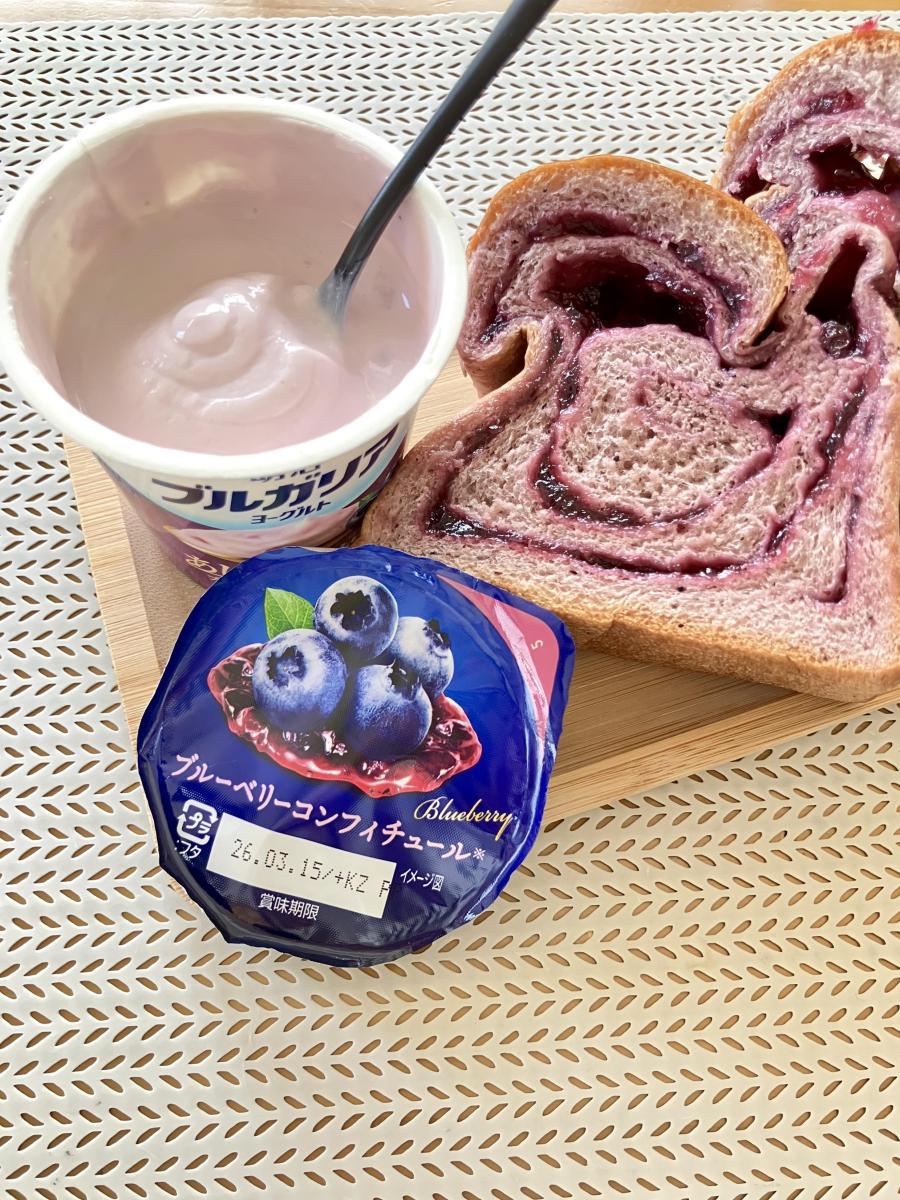 ブルガリアヨーグルトにブルーベリーコンフィチュールを合わせると、甘酸っぱさが程よく広がり、後味はすっきり。果実感もしっかりあって、朝食にもおやつにも合う上品な味わいでした。