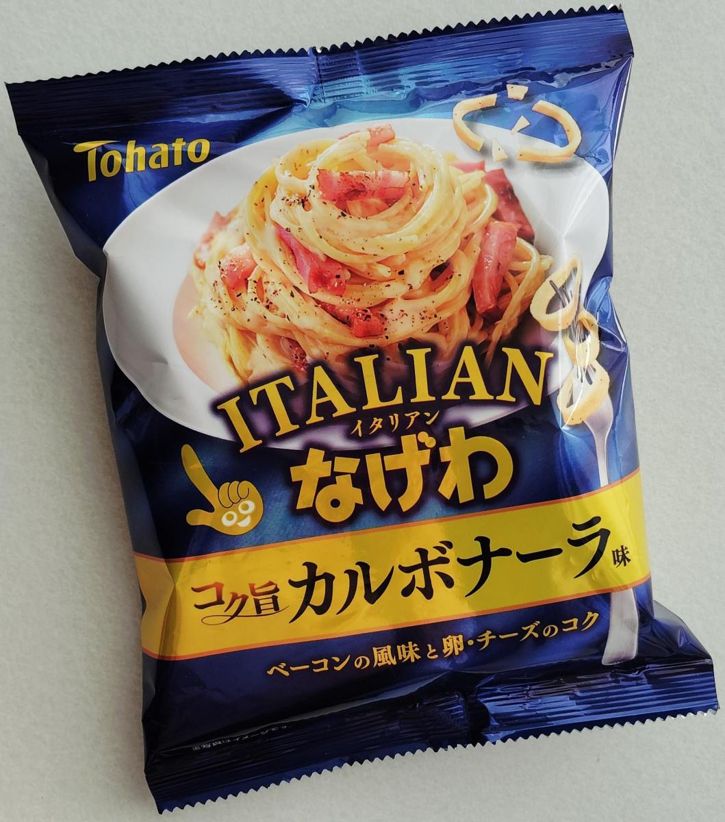 カルボナーラ好きで、なげわに、コク旨カルボナーラ味と何とも珍しい味わいが気になり購入してみました。袋開けると、ベーコンの香ばしい香りがただよい食欲がそそります。ポテトリングのサクサクと軽い食感はいつものようにそのままで、やみつきになる食感です。コク旨いチーズの風味も感じ美味しかったです。