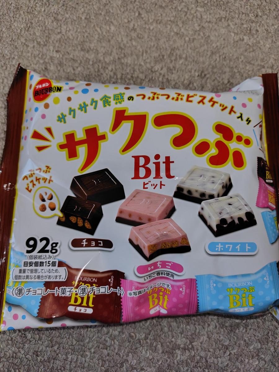 見慣れない白っぽいパッケージが目にとまりました。ビットに似ていますが、サクつぶビットと書かれています。