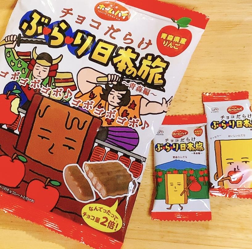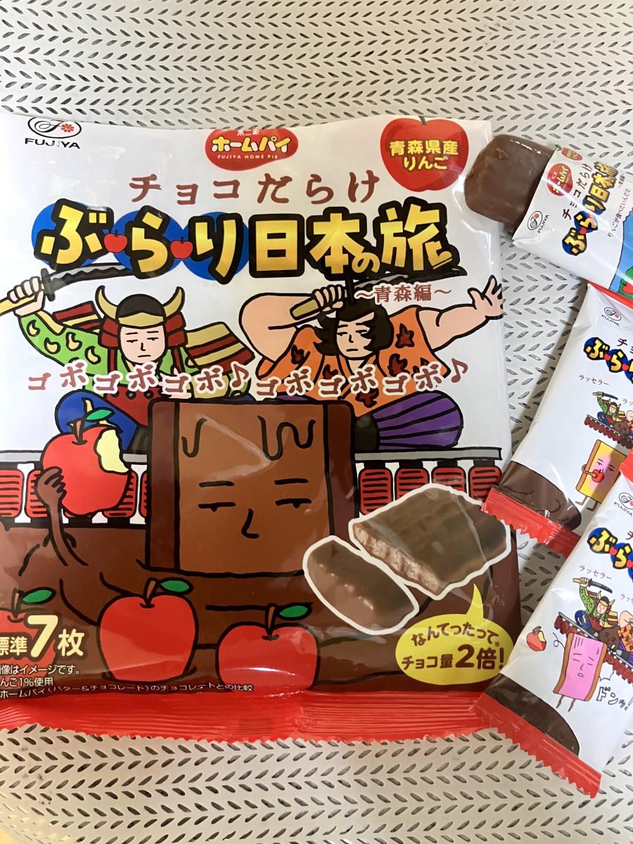 ホームパイをベースにしたチョコだらけ、のシリーズから、ぶらり日本の旅、青森編が出ました。ホームパイなので、丸いまみれさんと違って、四角いです。