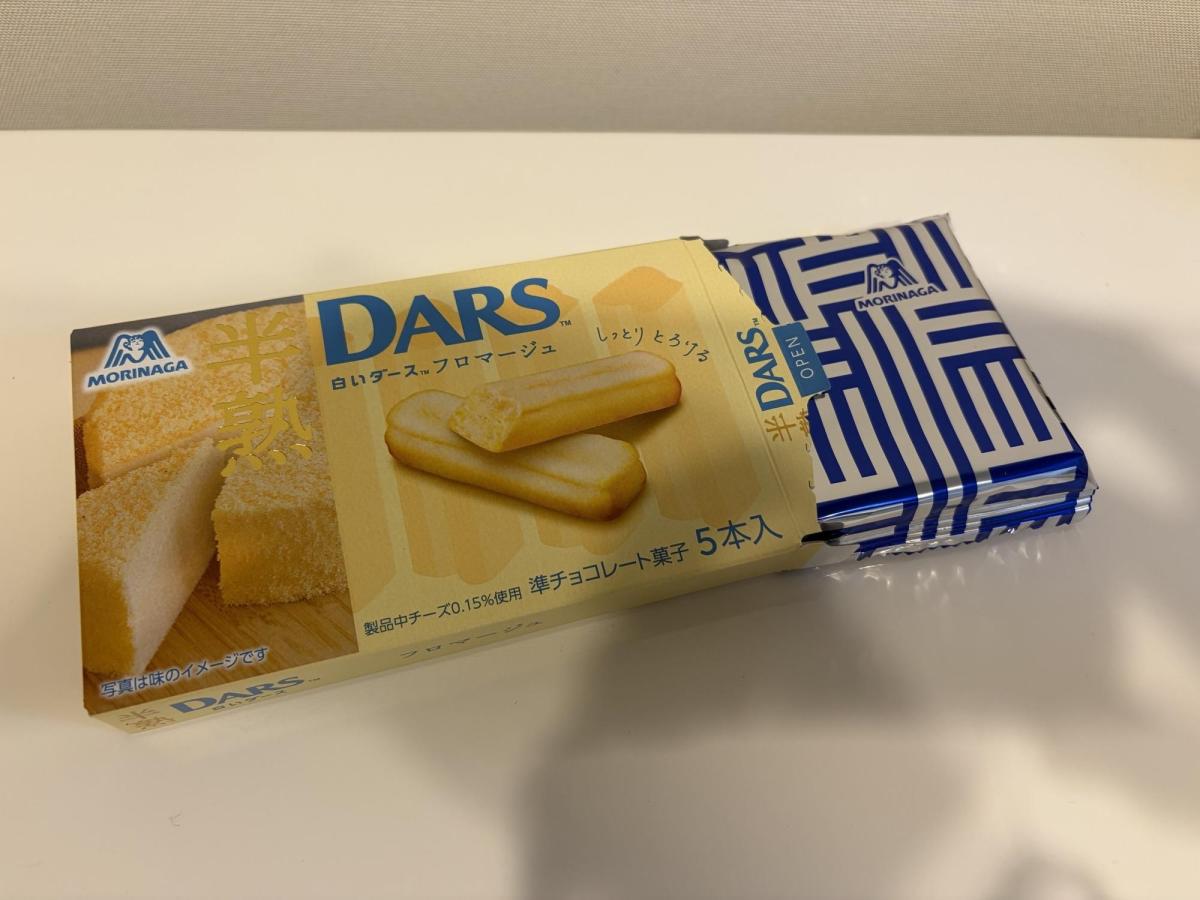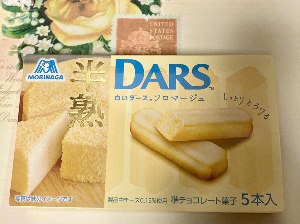 白い半熟ダースフロマージュと何だか美味しそうなネーミングに惹かれて購入してみました。5つにわかれており、1つが長細くて、なめらかな半熟仕立てで手に取ると崩れそうなくらいでした。甘さあるホワイトチョコレートですが、フロマージュ風のチーズの香りとともに少し塩味も感じ大変食べやすい味わいでした。ホワイトチョコ好きにはぴったりな味わいです。