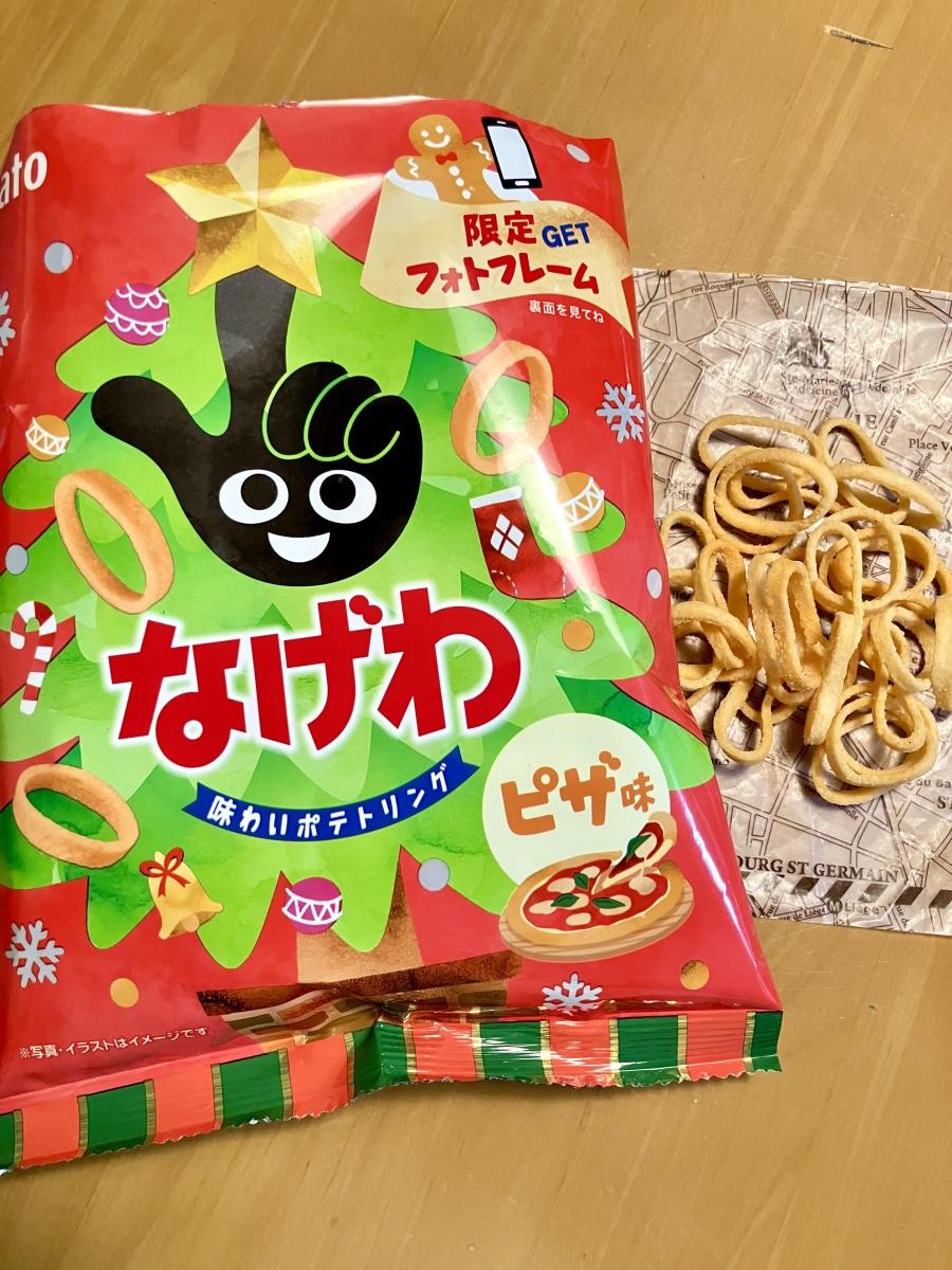 なげわはサクサク食感が癖になりチーズの濃厚なピザ味との相性がとてもよかったです。