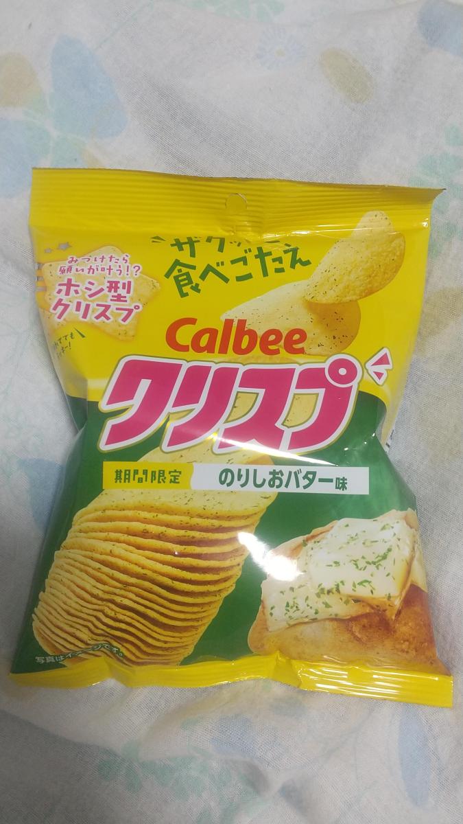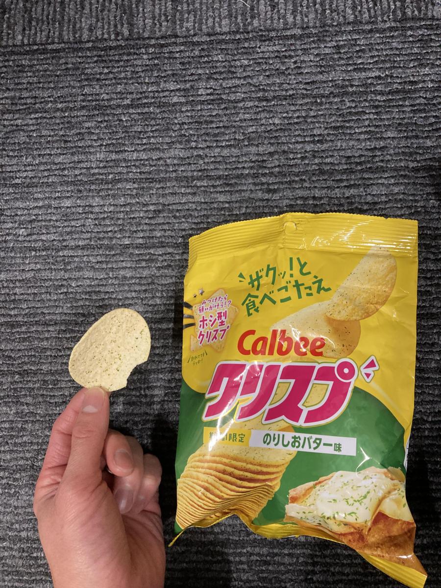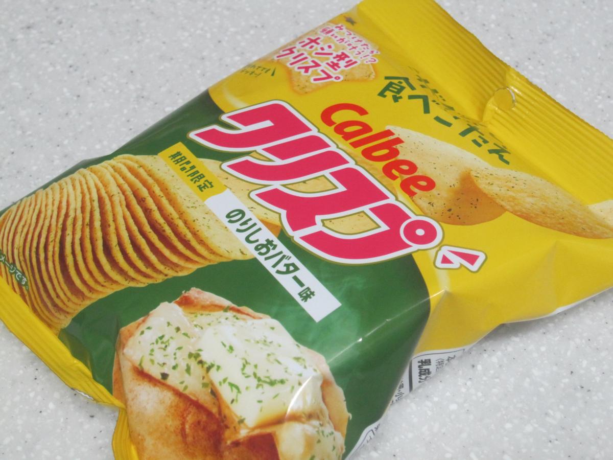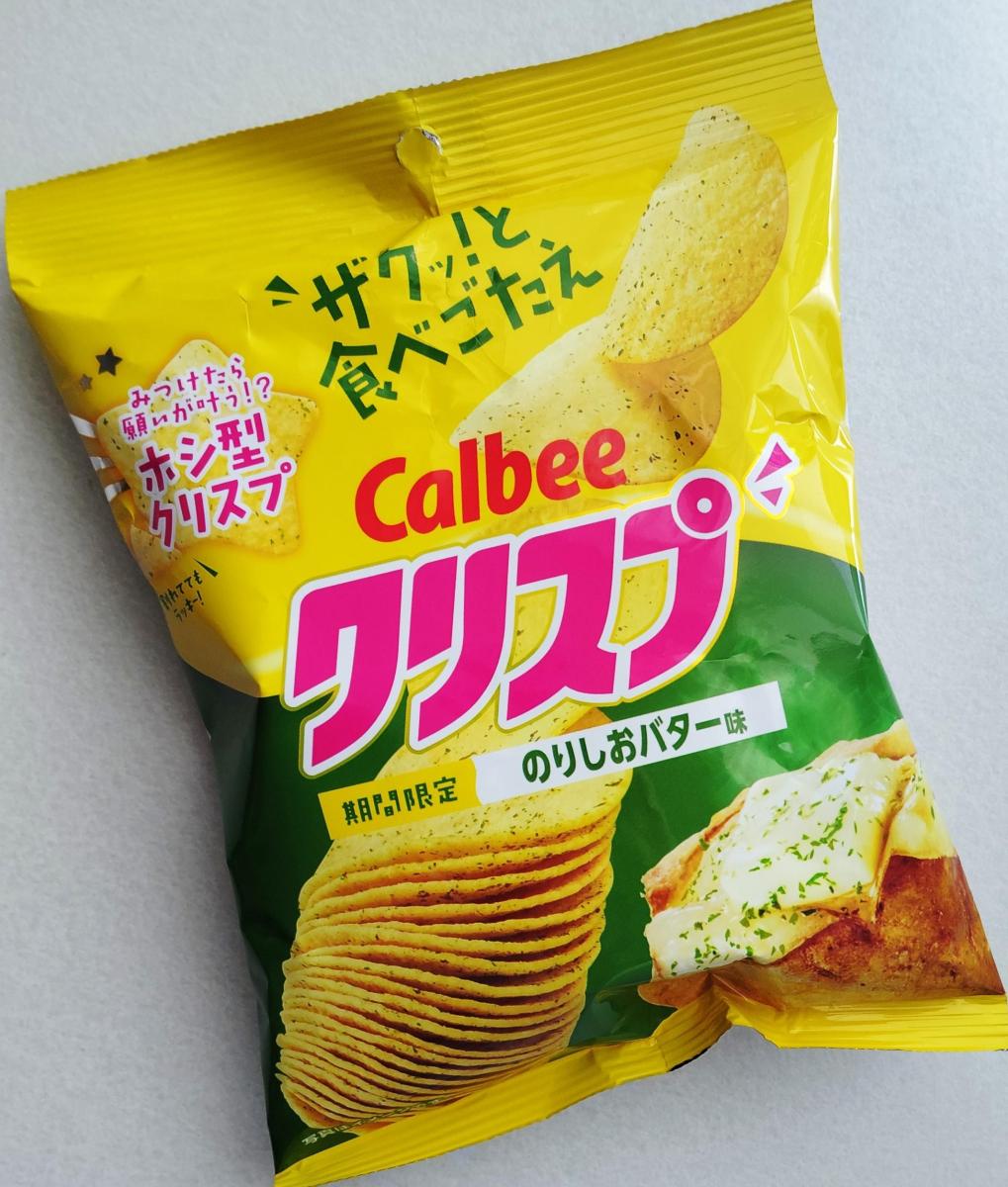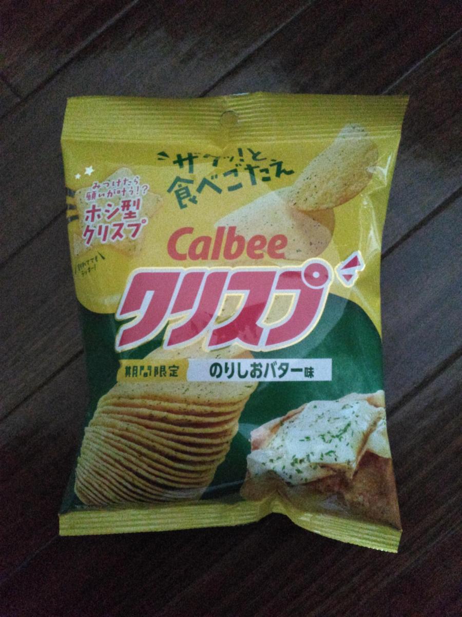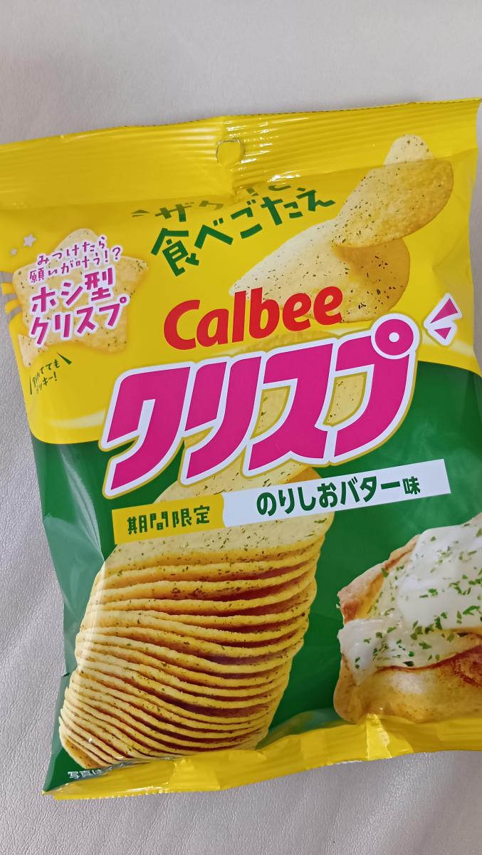 クリスプのポテトチップスから、期間限定で、のり塩バター味が出ていたので、買ってみました。