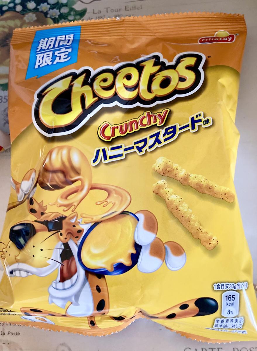 マスタードにはちみつという組み合わせは洋風の甘辛味とでも言いたくなるもので、これがなかなかおいしい。豚肉とかチキンのソテーのソースにありそうな味で、はちみつのコクのある甘みの中にマスタードらしいビリリとくる辛味を感じさせるのだが、はちみつ、マスタード両方とも主張はとても強い。けども喧嘩しているようなところはなくて、いい共演だなと思える。スナック菓子ではこれまでにない味だけどとてもおいしいフレーバーで、チートスのカリカリ食感と相まって、食べだしたら止まらないスナック菓子だと思った。