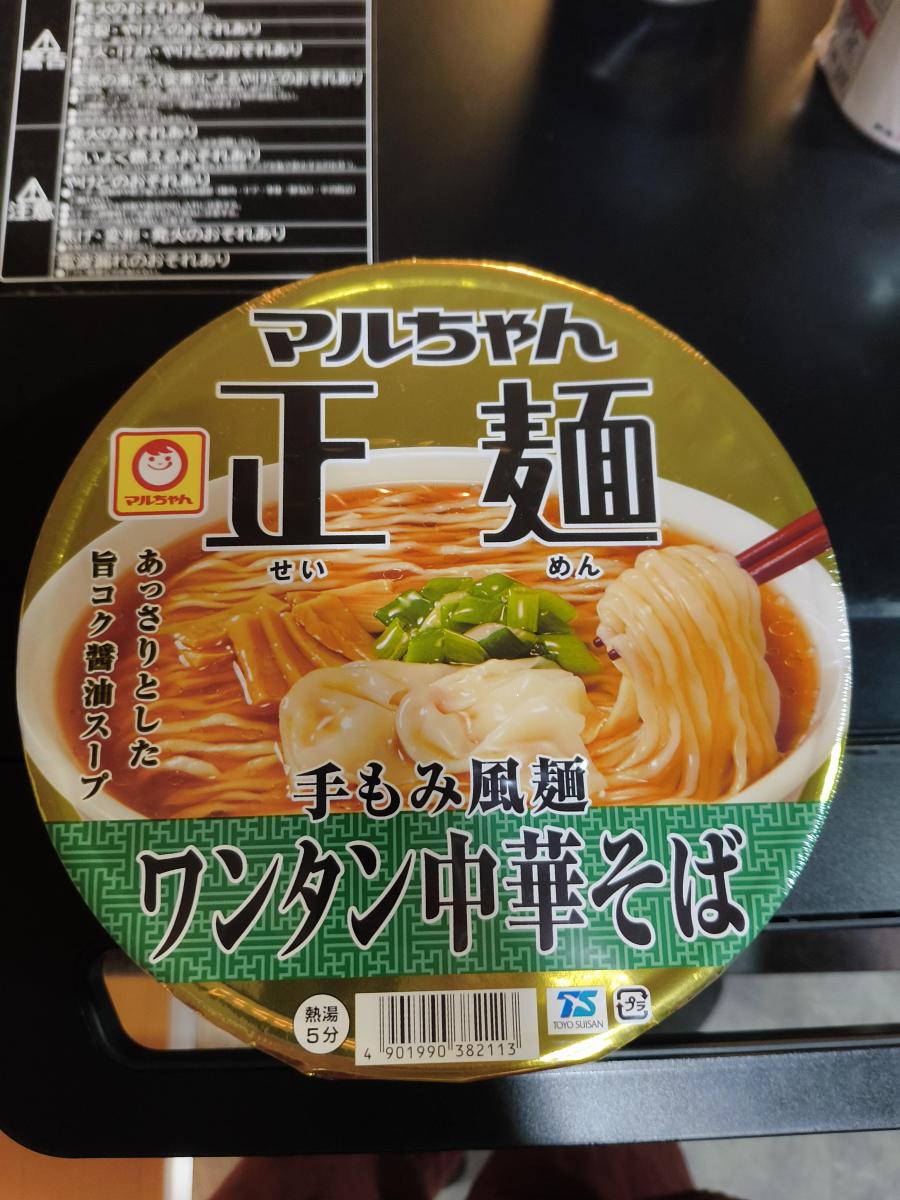 まるちゃん正麺「ワンタン中華そば」は、つるんとしたワンタンとコク深い醤油スープが相性抜群。麺は生麺風のなめらか食感で、袋麺とは思えない完成度。手軽なのに専門店気分が味わえる一杯でした。