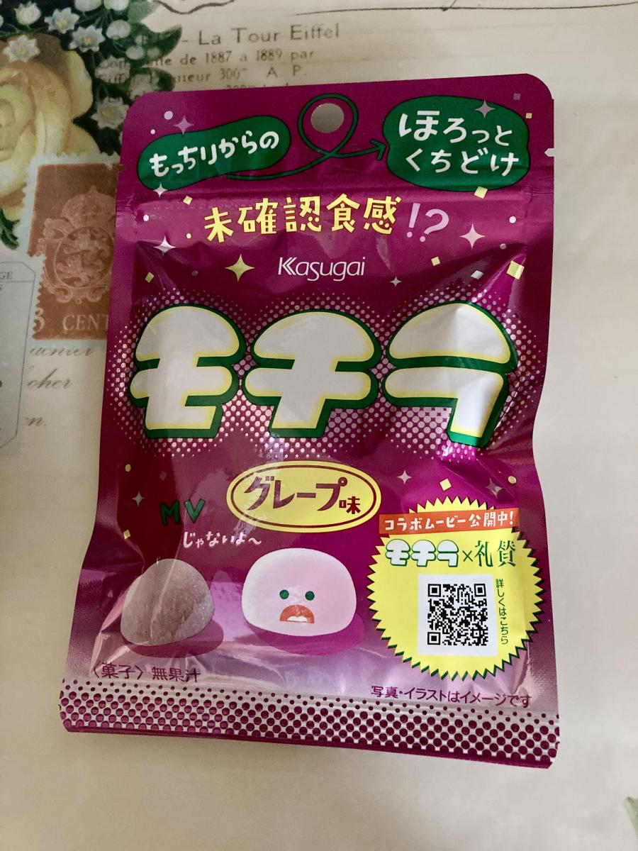 おもしろいネーミングのモチラというグミの、グレープ味が出ていたので買ってみました。
