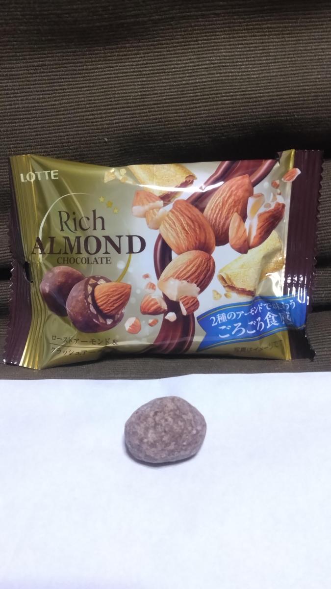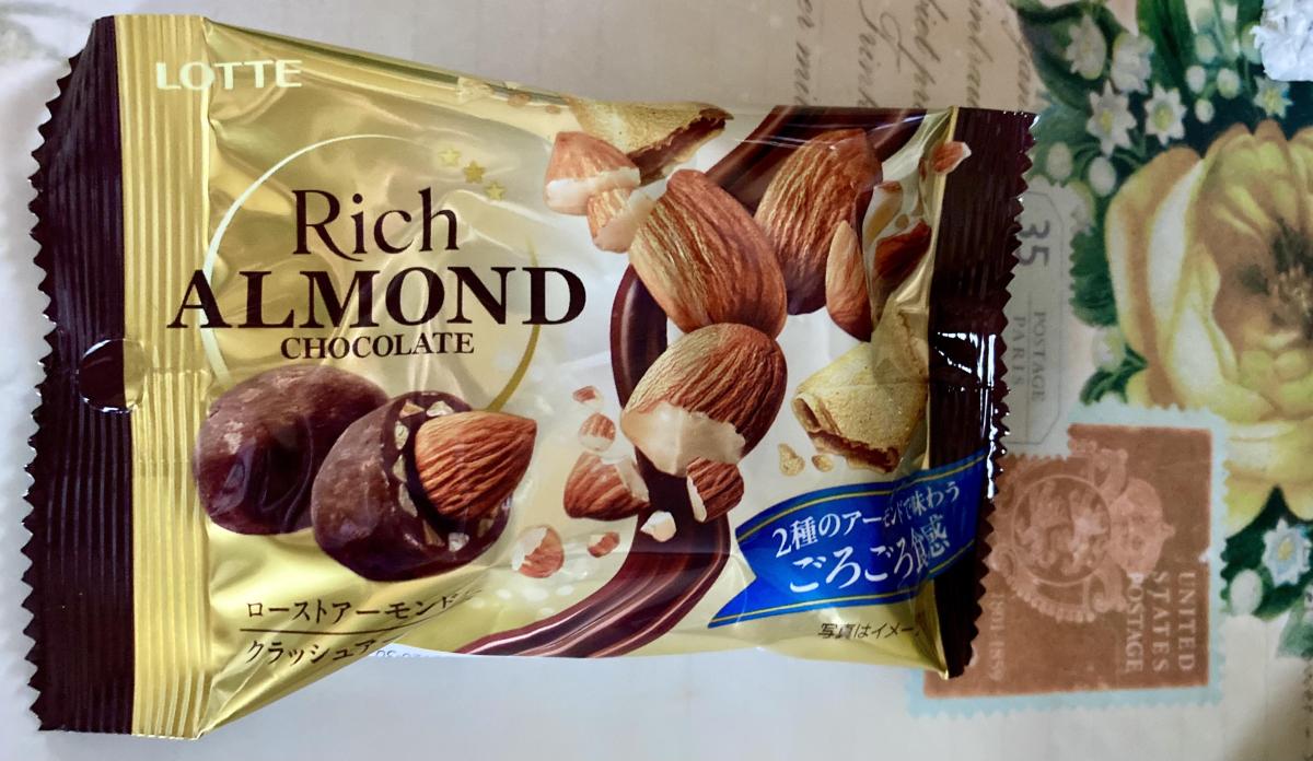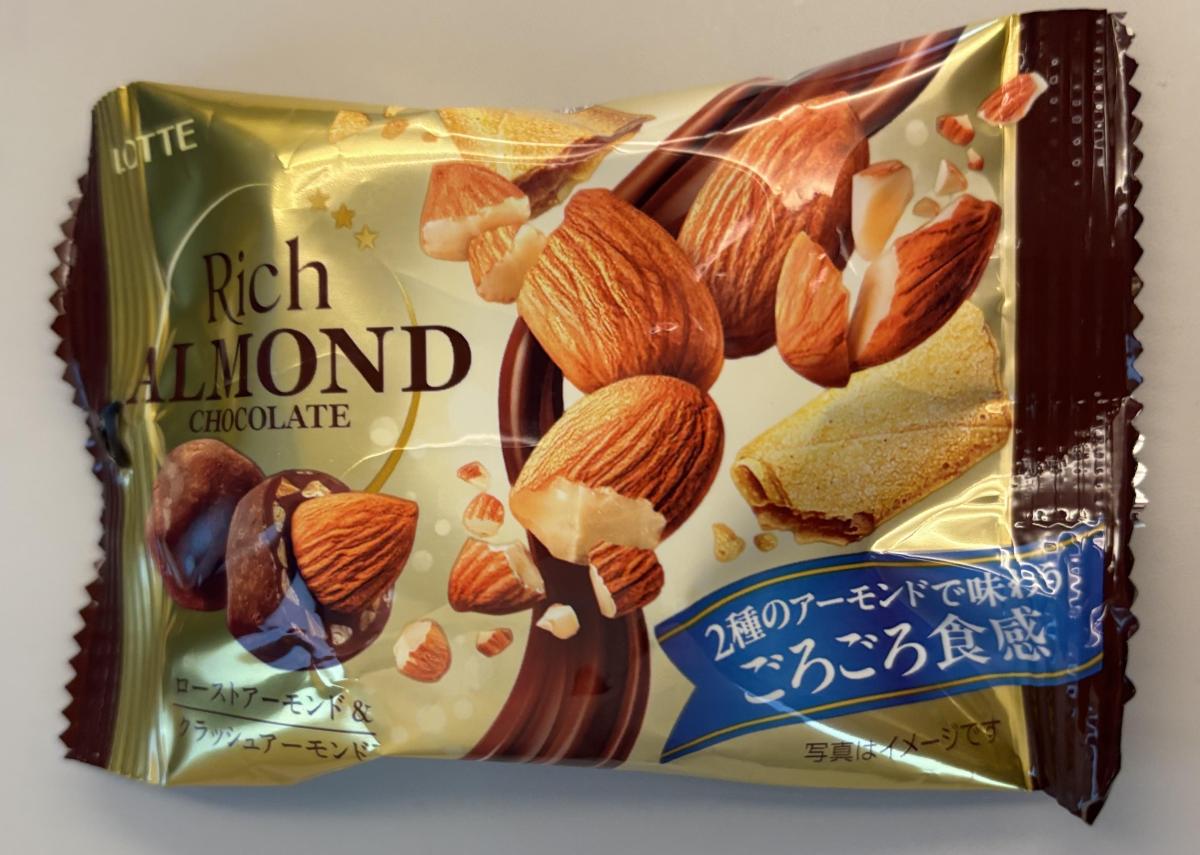 お馴染みアーモンドチョコの、リッチアーモンド。