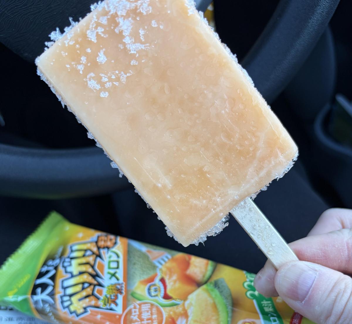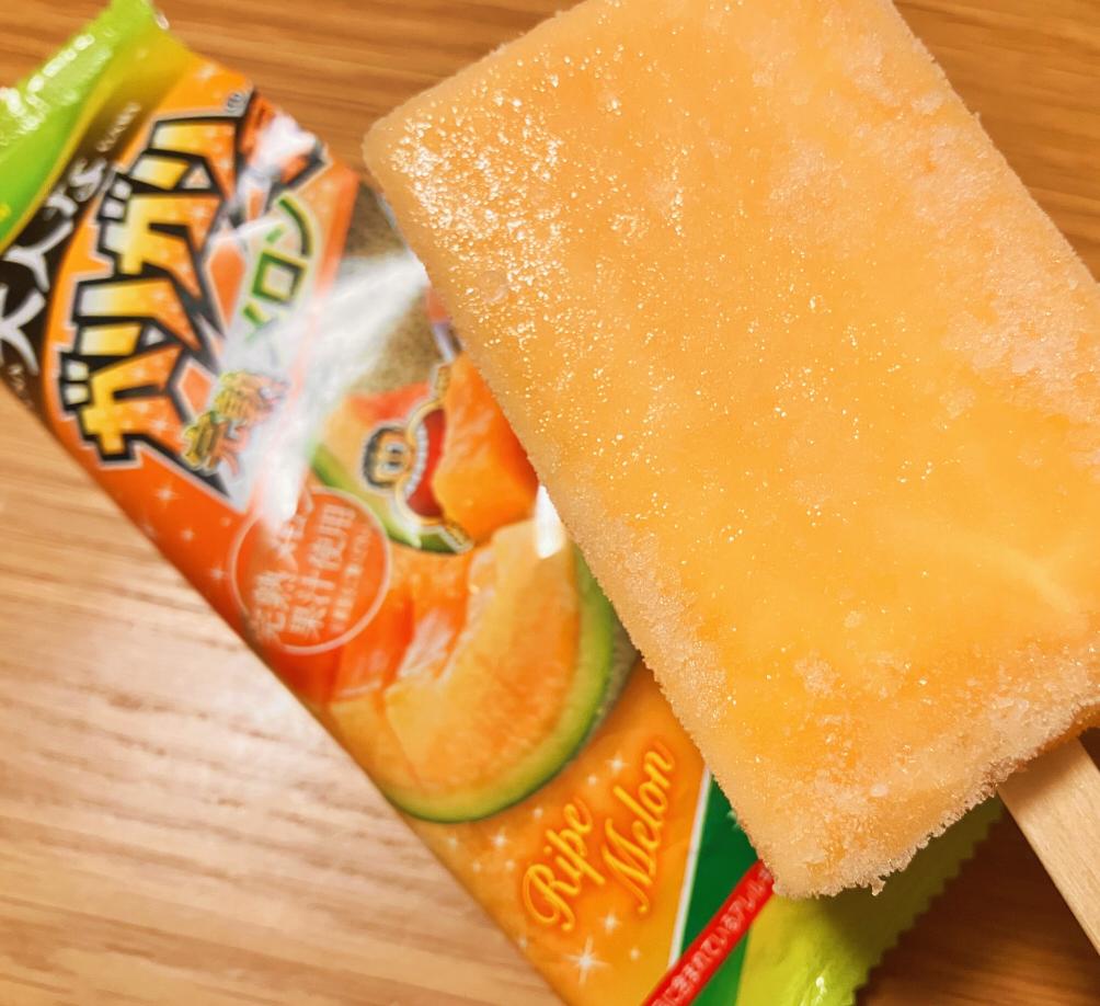 メロン果汁33%の通り、甘いジューシィメロンです。ソーダ味みたいに氷がガリガリしてません。どちらかと言うと、さっくりした食感です。1本食べても寒くなりませんでした。甘ーい完熟した赤肉メロンが味わえました♡