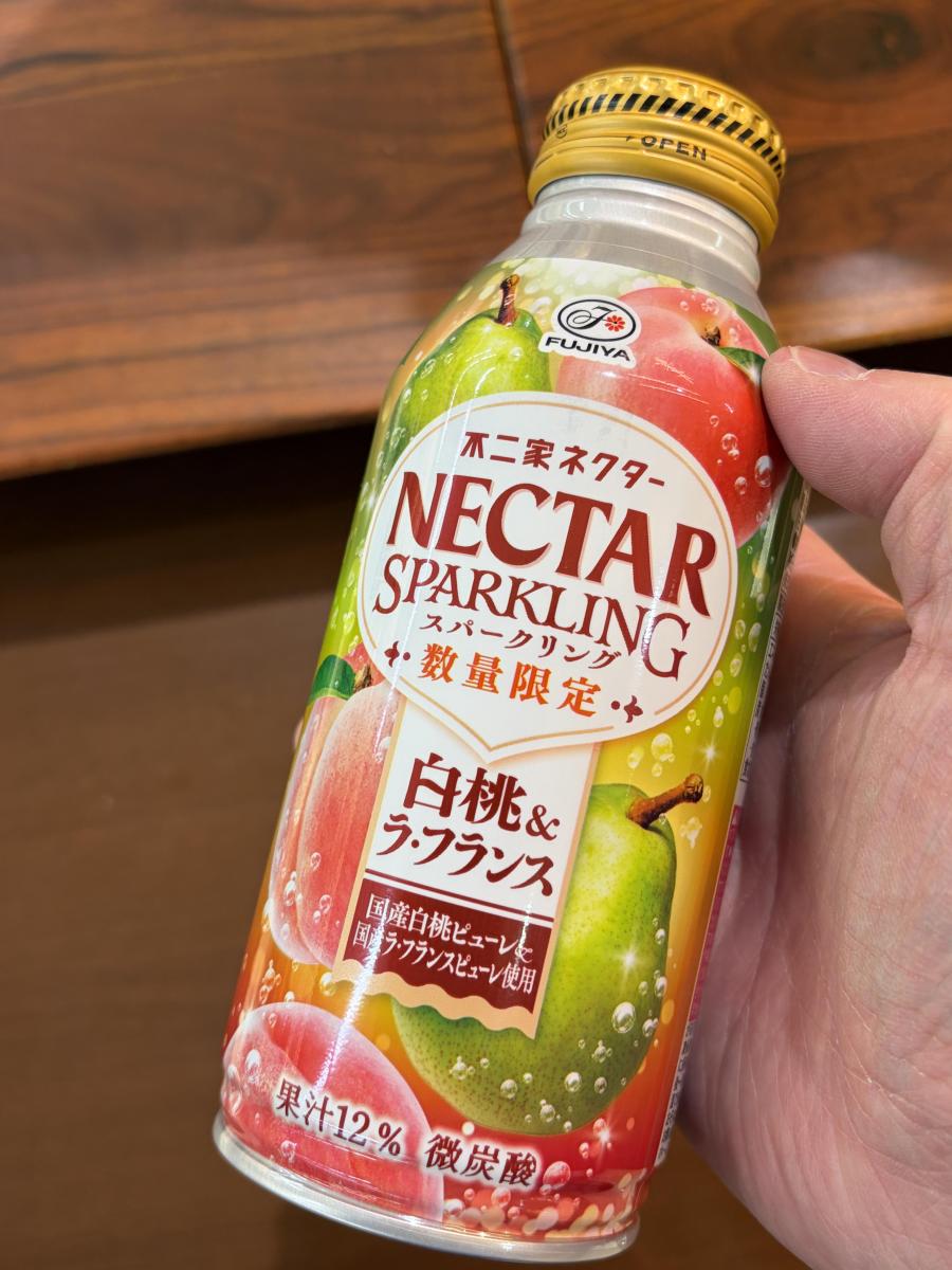 スパークリングの時点で予想はしていましたが、ネクターに独特なとろりとした飲み心地よりも炭酸のシュワシュワ感が強く出ています。味も桃よりもラフランスの方が強いかなという調整でした。これはこれで美味しいのですが、不二家ネクターの看板を使う時に期待するあの感じは希薄かな?普通に炭酸飲料としては美味しいです。