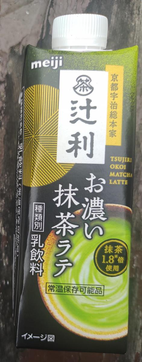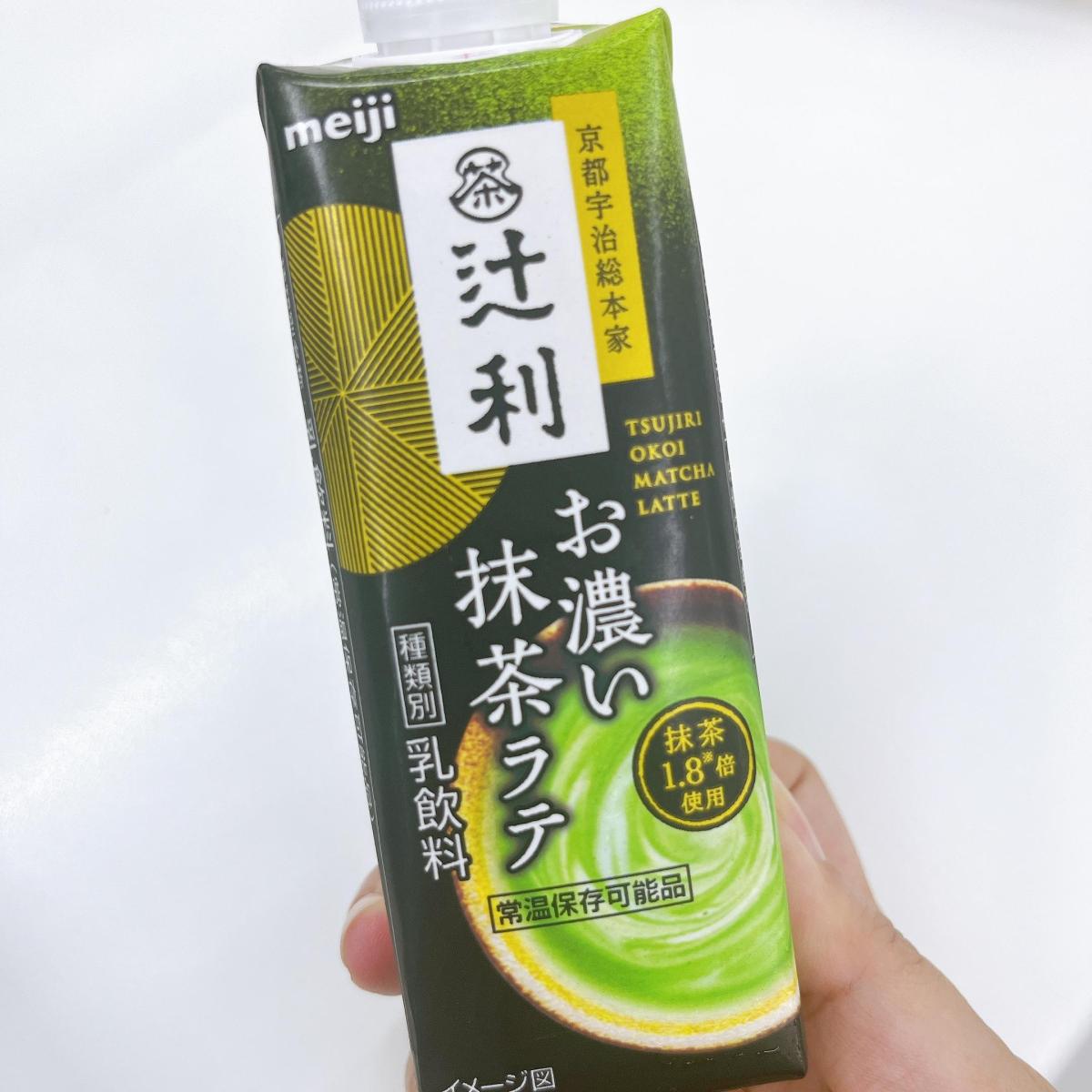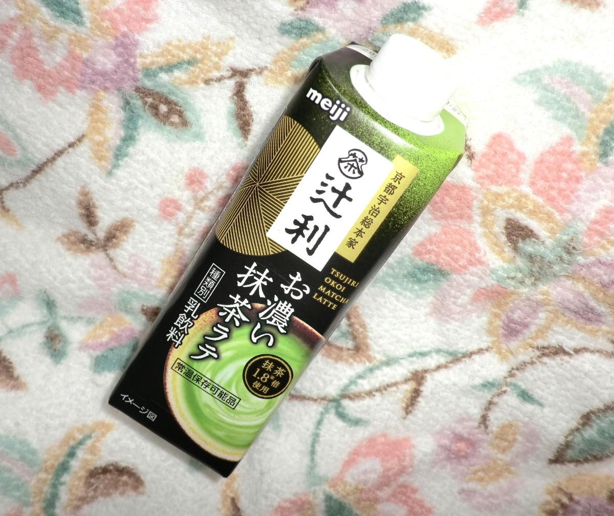 高級感のある、ブラック系の紙のボトルに入った、抹茶ラテに目が留まりました。京都宇治総本家、辻利のお濃い抹茶ラテと書かれていました。