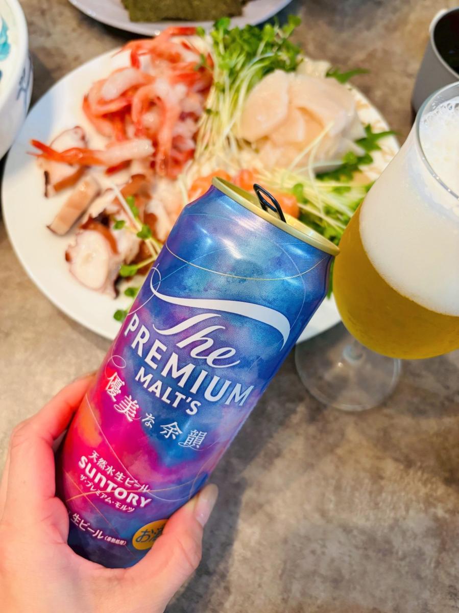 プレミアムモルツにしては、香りの華やかさは控えめで、結構苦味もしっかり。泡はもこもこきめ細かいです。どフルーティーな方が好きなので、そこまで好みドンピシャではなかったかな!