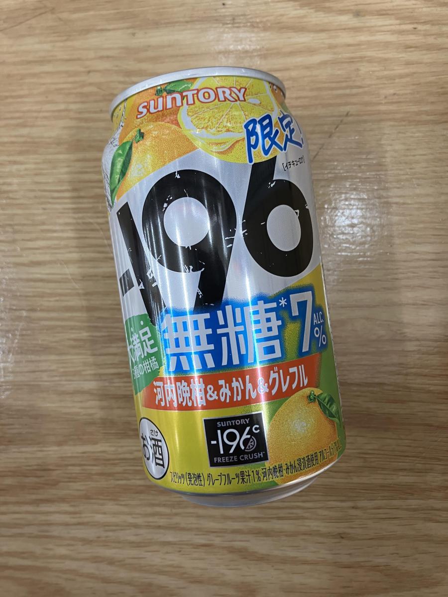 果汁は1%ですが爽やかな果汁感が高い−196の新商品です。グレープフルーツをはじめ、3種類の柑橘類が使われていて、アルコール度数も高く飲みごたえあります。