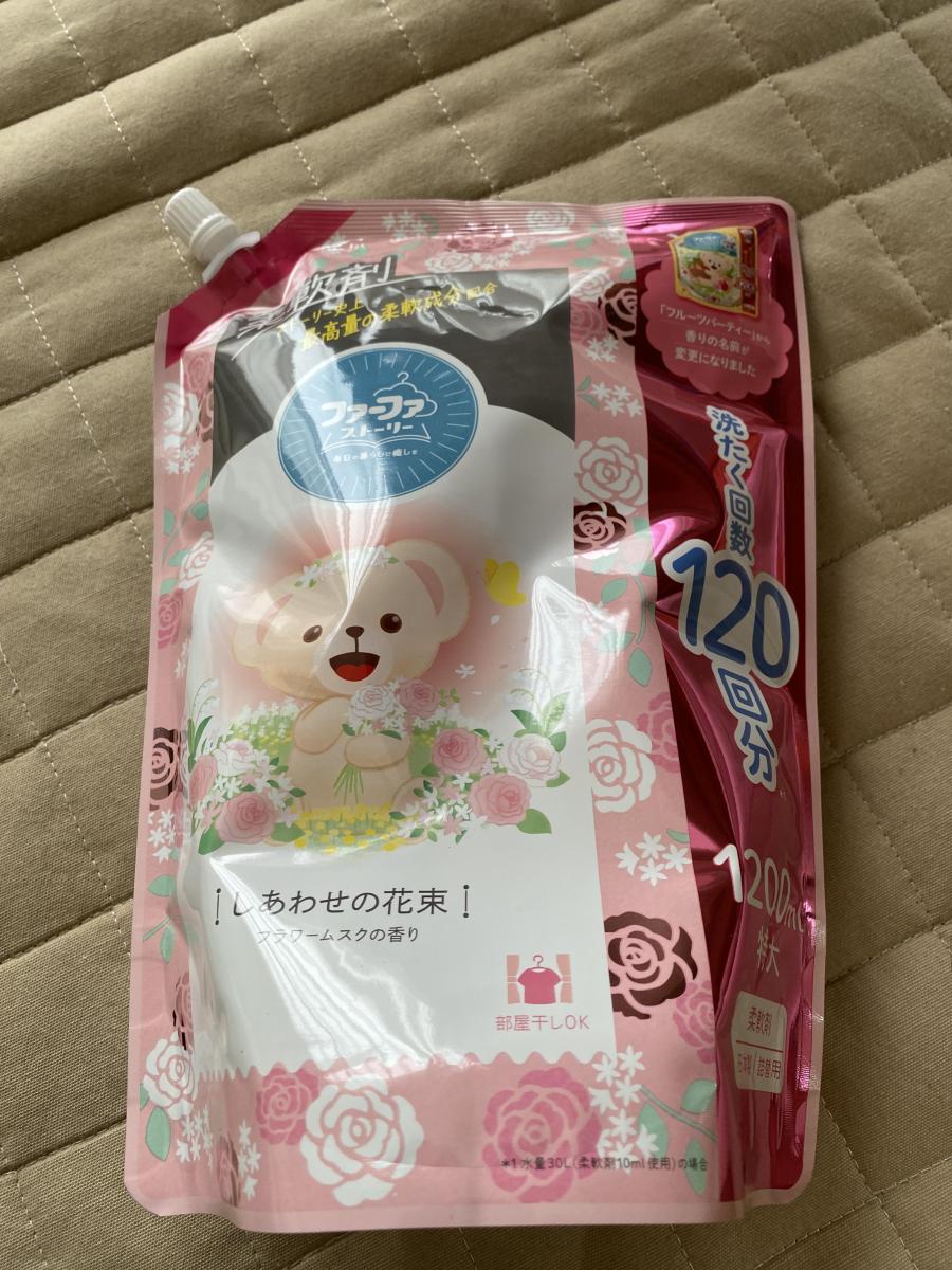大好きなファーファシリーズ、パッケージのクマさんがいつも可愛いですね。しあわせの花束、というネーミングに惹かれて新たに購入!ムスクの香りがふんわりといい感じ、強すぎないので家族みんなで使えます。可愛らしい柔軟剤、気分良くお洗濯できます。