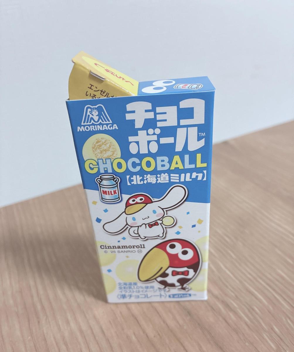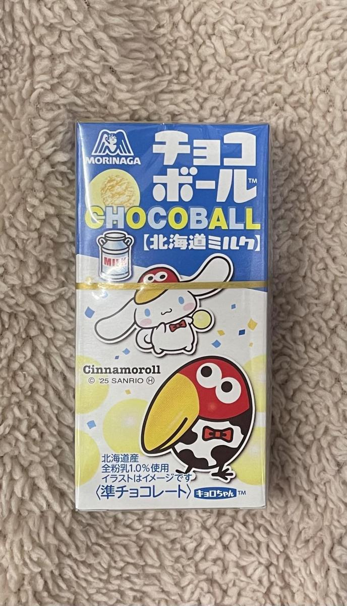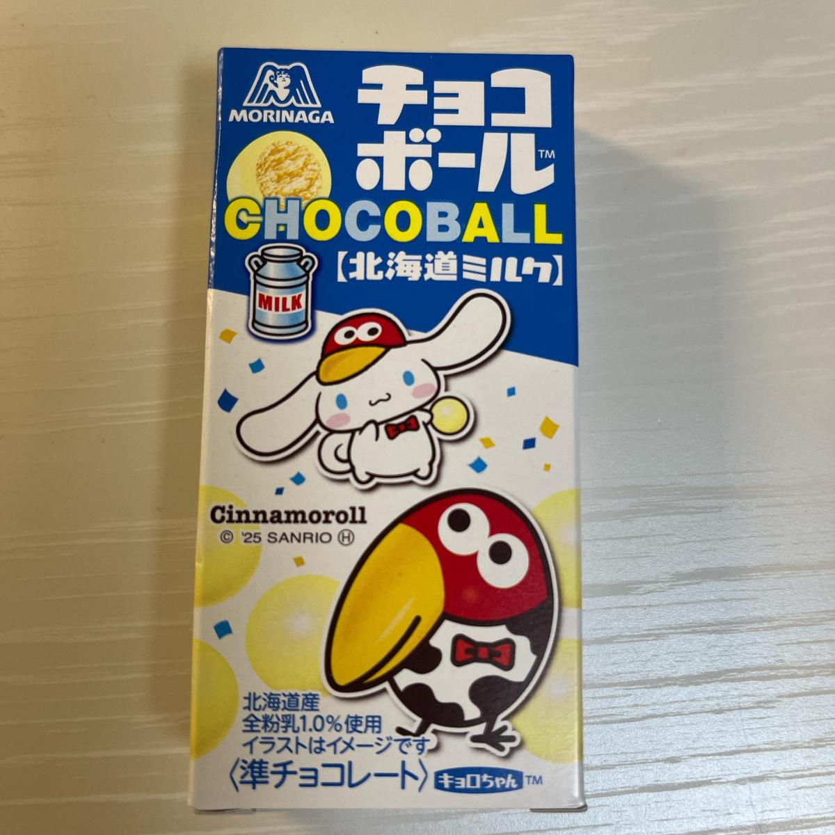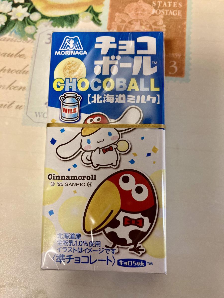 こちらはシナモロールとキョロちゃんが可愛いすぎて思わず購入してしまいました。シナモロールちゃんの色をイメージしてなのか?白い珍しいチョコボールです。しっかりとミルクのきいたホワイトチョコでコーティングされており甘くてとても美味しかったです。通常のチョコボールも美味しいですがたまにホワイトの気分の時はまたこちらを購入したいです。