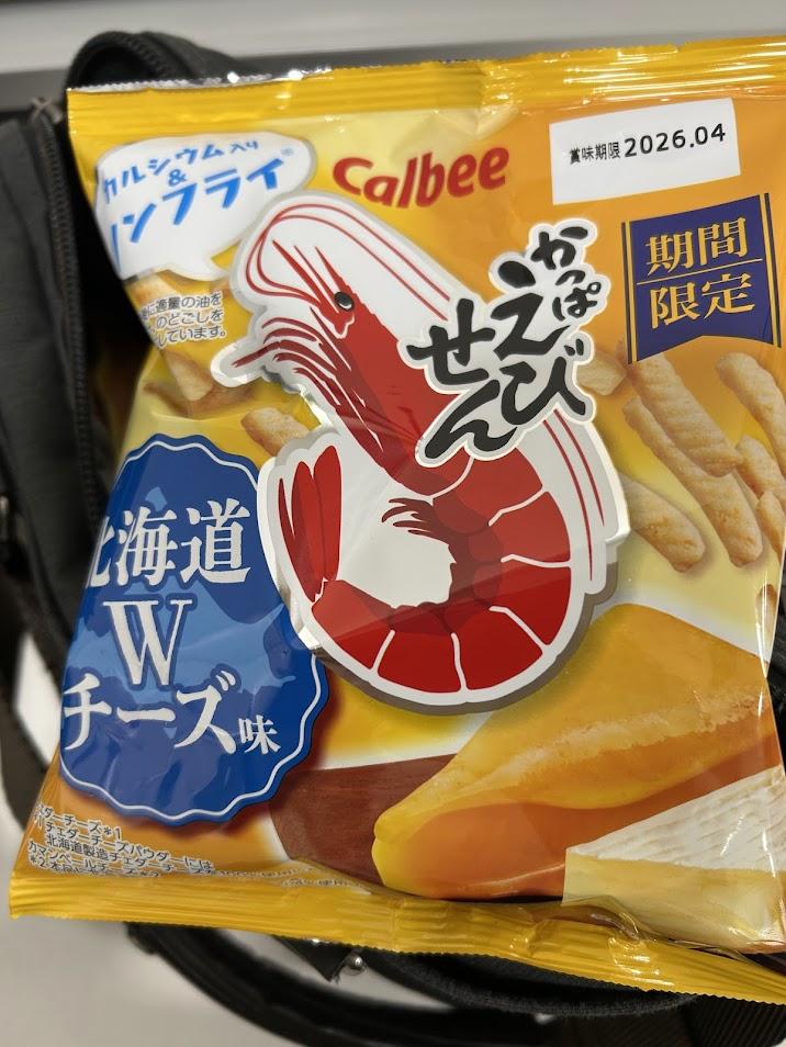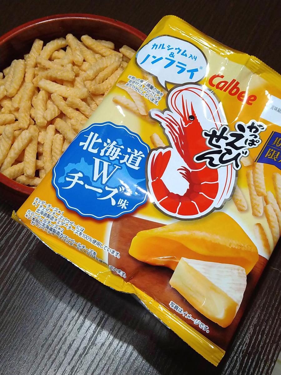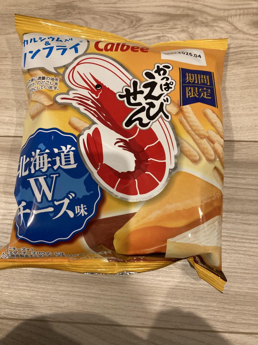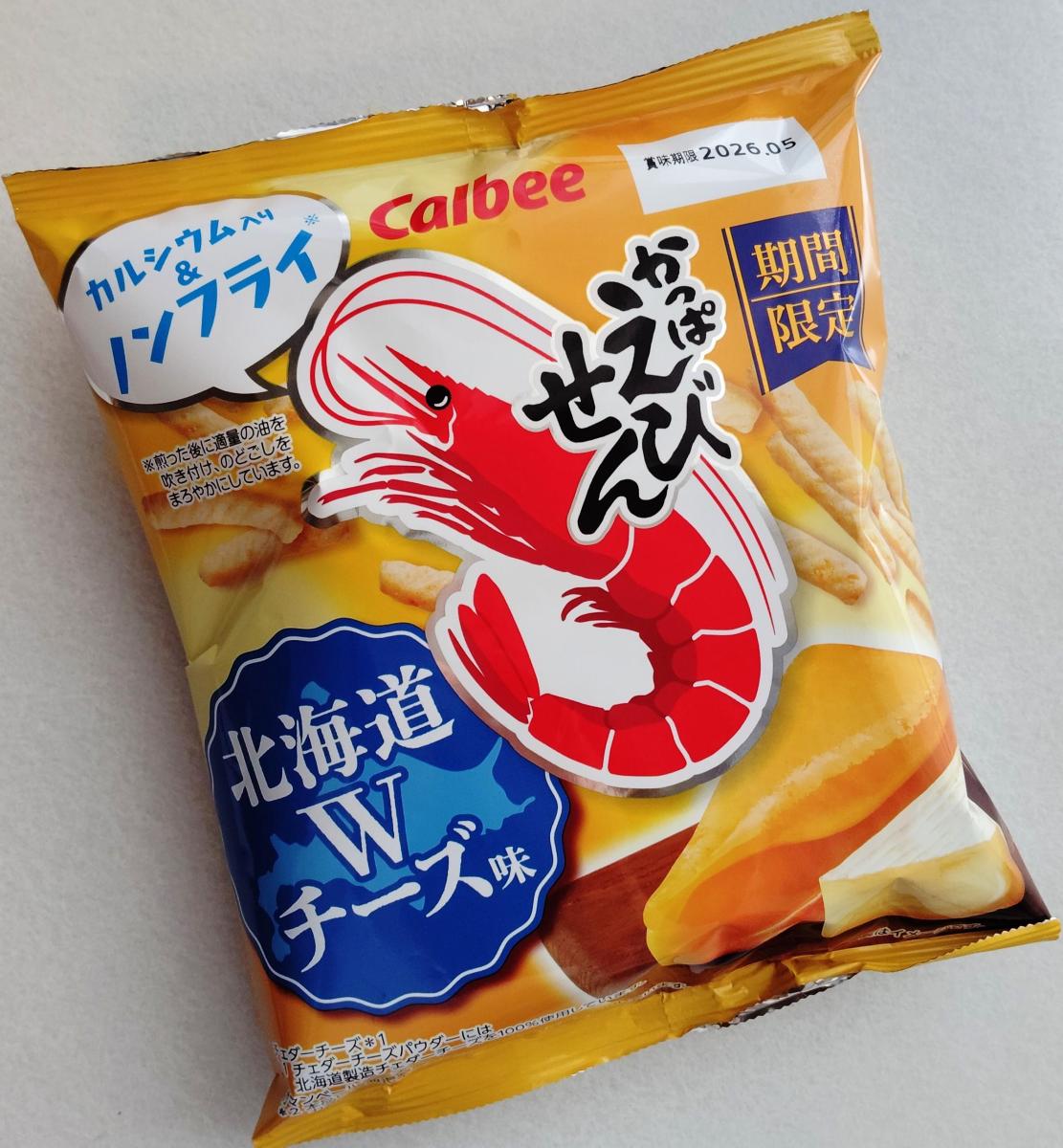北海道チーズは食べたことあるんですが、あれれ?チーズが2種類のWに増えた!!前は北海道産チェダーチーズだけでしたが、北海道産カマンベールチーズをプラスしたWチーズとはなんともリッチ。コクのあるチェダーチーズにミルキーなカマンベールが加わって、まろやかですごくおいしい!!冬だけしか味わえないリッチなチーズのえびせん。いつもに増してやめられない&とまらない?!