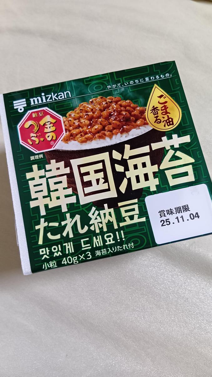 新商品に思わずとびつきました。見た目はイマイチそうで期待はしていなかったのですが、とてもヒットしました。納豆の上位3位に入るくらいです。韓国のりを生かした味のタレが甘辛く、ごま油が良い仕事をしていました。ご飯ととてもよく合いました。