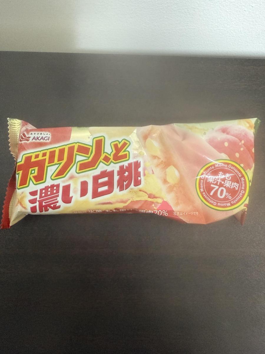 桃大好きで、パッケージのネーミングに惹かれてどんな味か試したく購入してみました。果汁・果肉70%使用しているので、白桃の濃くジューシーな味わいで白桃まるごとを食べているような濃厚さで、桃好きには大変美味しい味わいでした。いつものガツン、とシリーズよりもしっとりした食感で、アイスキャンディー感もありいい食感で、また購入してみたいなと思いました。