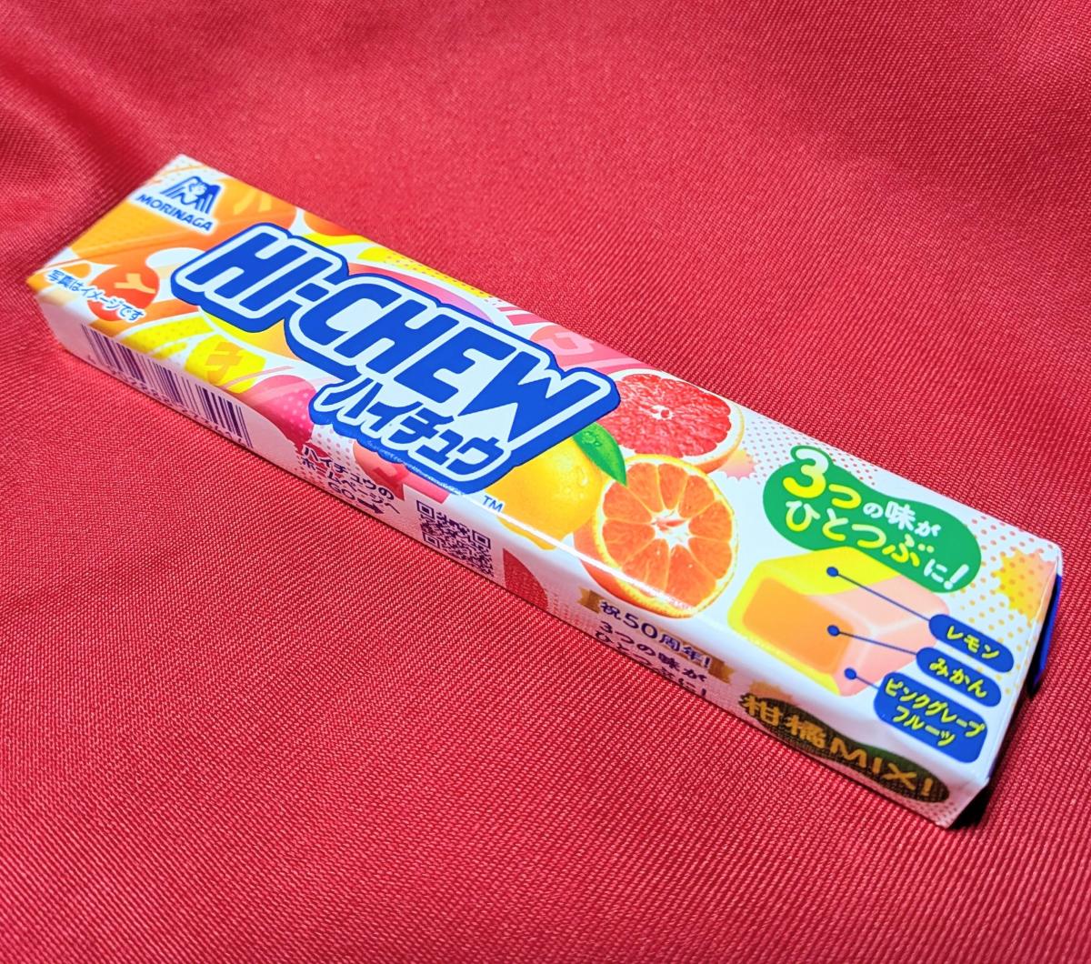 ハイチュウに新しい柑橘ミックス味が出ており柑橘系が大好きには食べて見なきゃと思い購入してみました。見た目がカラフルでかわいい色合いです。みかんのまろやかな甘みとレモンの酸味、ピンクグレープフルーツの甘酸っぱさが合わさってバランスがよく大変美味しい味わいでした。噛めば噛むほど美味しさが増す感がして柑橘系好きには、ぴったりな味わいでした。
