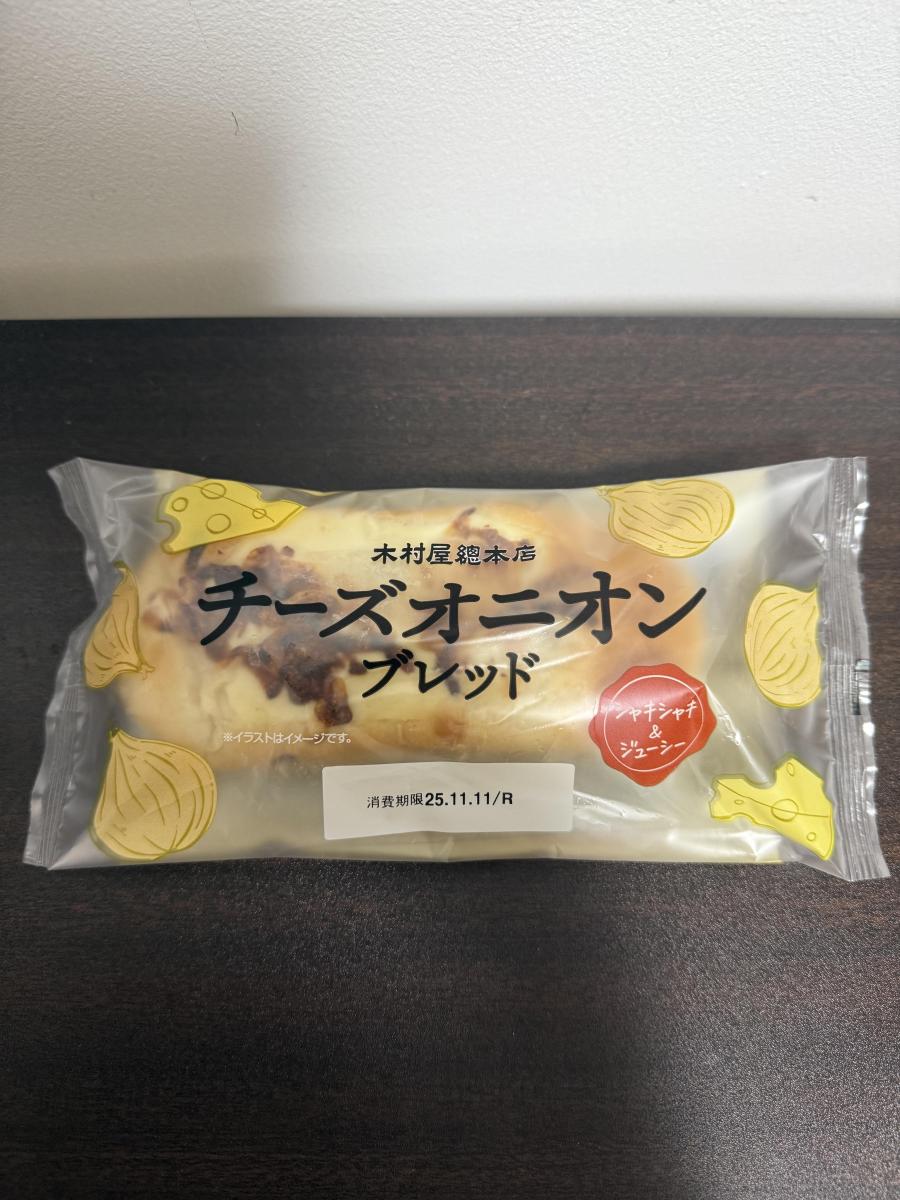 ふんわりとした食感のパンの上にスライスオニオンとチーズが乗っています。