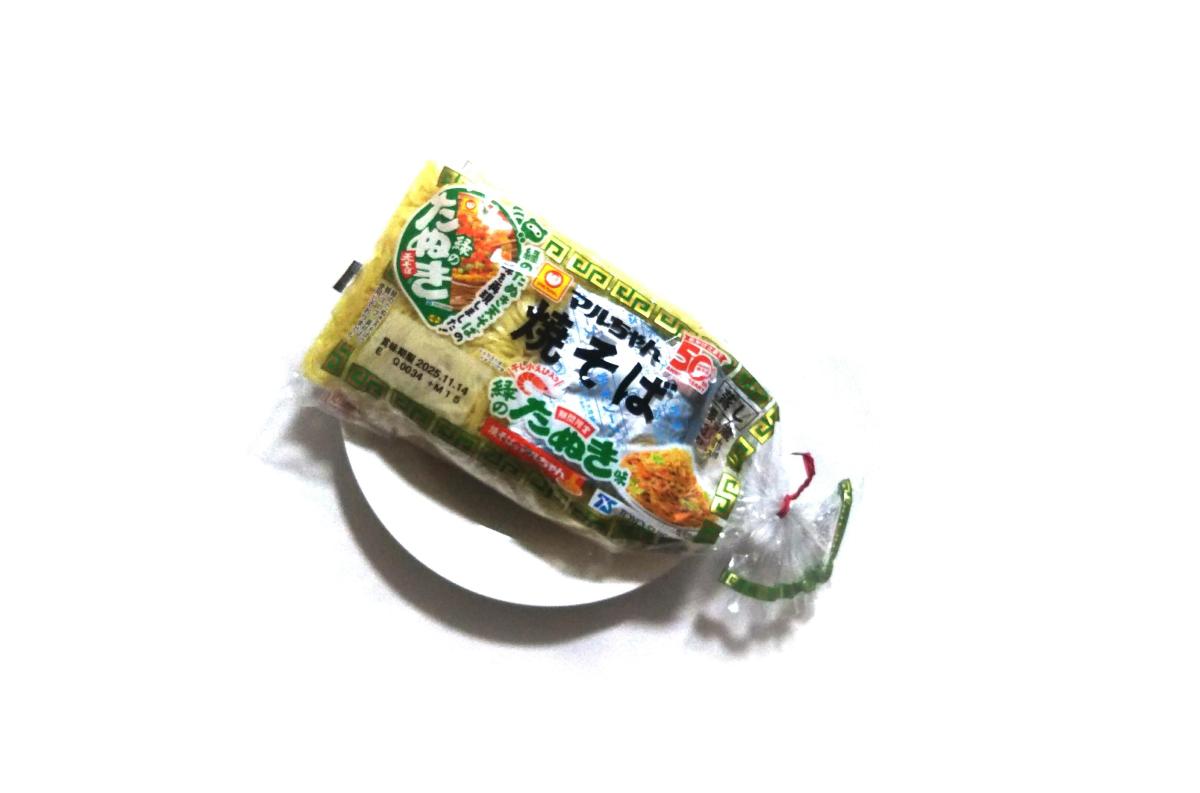 天ぷらそばの緑のたぬきをどうやって焼きそばで表現するのかなと興味津々で購入してみたが、これはなるほど、と思えるような見事な再現。ダシの風味と天ぷらのコクみたいなものがあって、ひとくち食べれば「あああの味だ」とはっきりわかる。それに粉末スープの中に小海老が入っていて、これが色んな面でとてもいい仕事をしている。風味、香ばしさ、食感のアクセント、というところで存在感抜群で、緑のたぬきらしさを感じさせてくれるに大いに貢献しているように思える。変わり種の焼そばなのは間違いないが、さすが同じメーカー内のコラボという感じで、とてもおもしろい焼そばだなと思った。