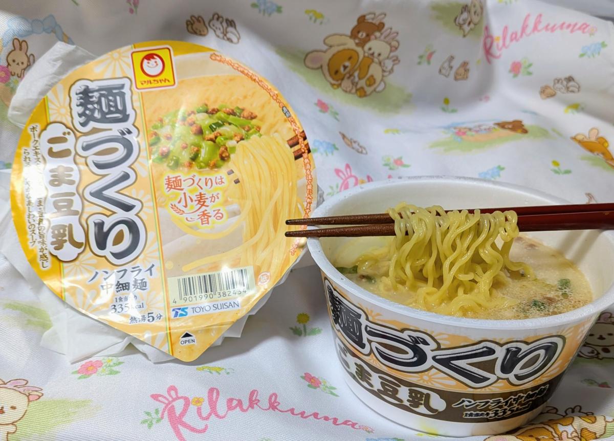 ノンフライの麺はしっかりめの歯ごたえがあって、もちもちとしていておいしいです。豆乳味のカップラーメンは初めて食べましたが、まろやかでおいしかったです。