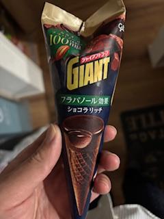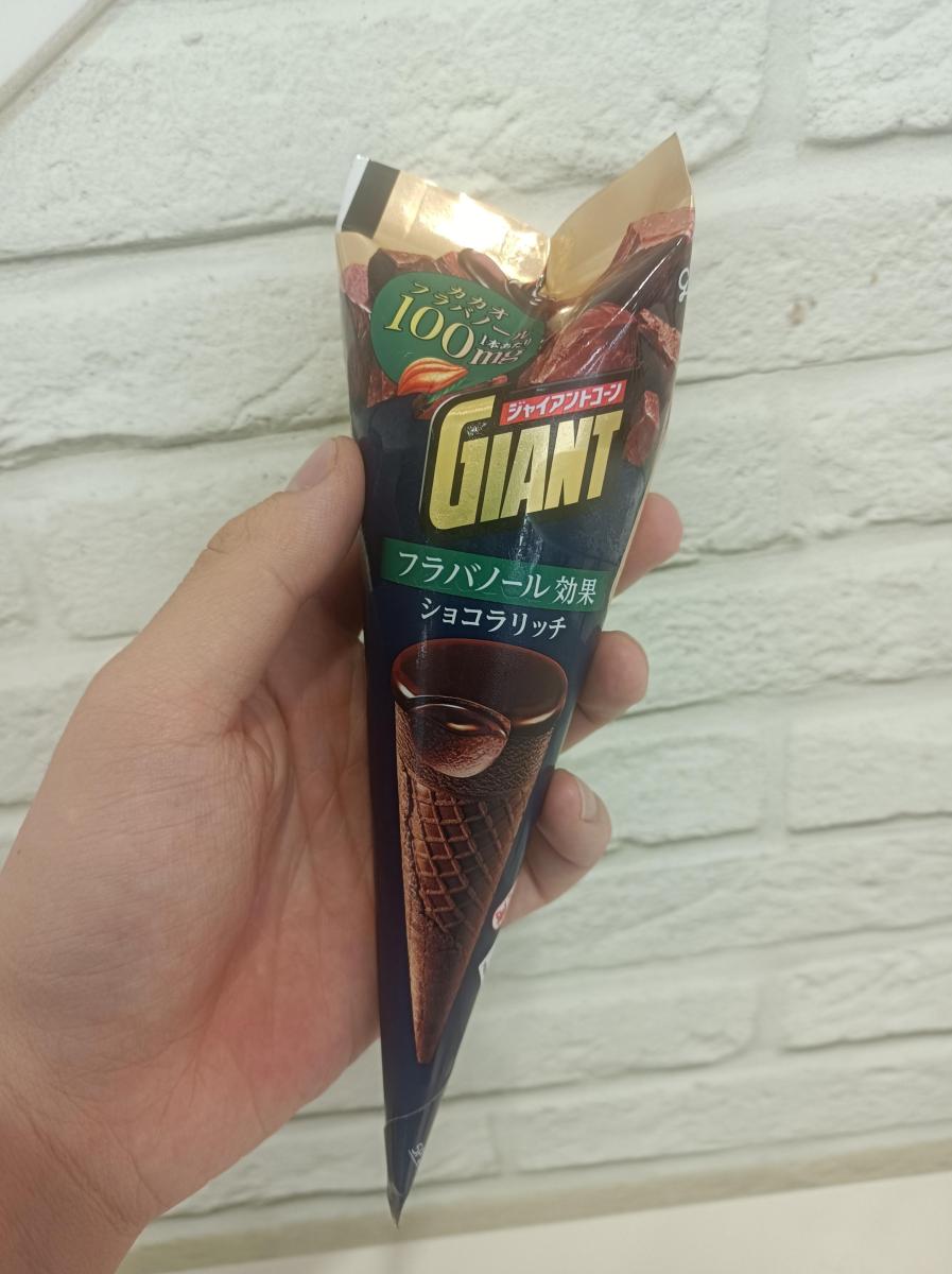 アイスクリーム規格の濃いチョコアイスクリームとパリッとチョコレートコーティング、生チョコ、チョコワッフルコーンのチョコ尽くしなジャイアントコーン。カカオの風味が濃くてほろ苦く、ほんのりフルーティーな甘すぎない大人味。ココアっぽさもあって濃厚すぎないクリーミーな甘さが好み。