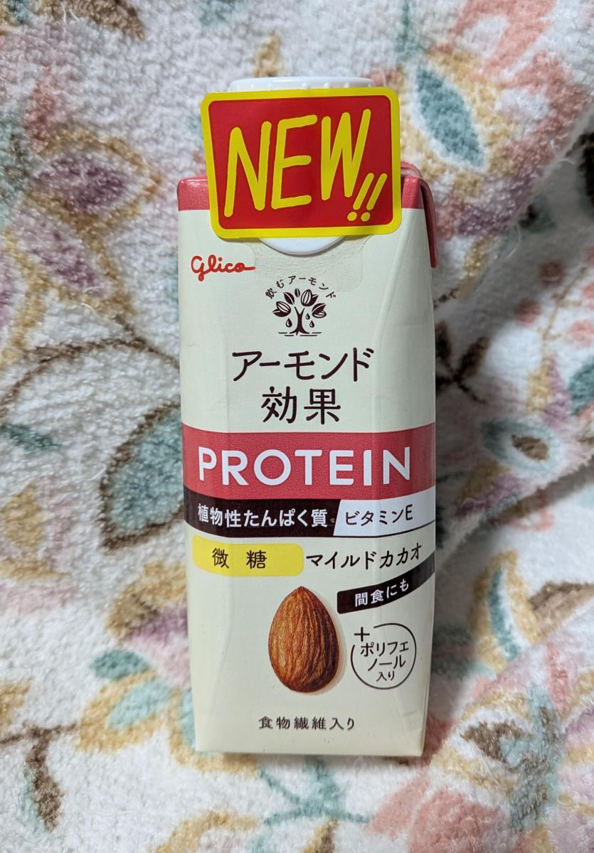 プロテインがついたアーモンド効果が出ました。微糖のマイルドカカオのドリンクです。