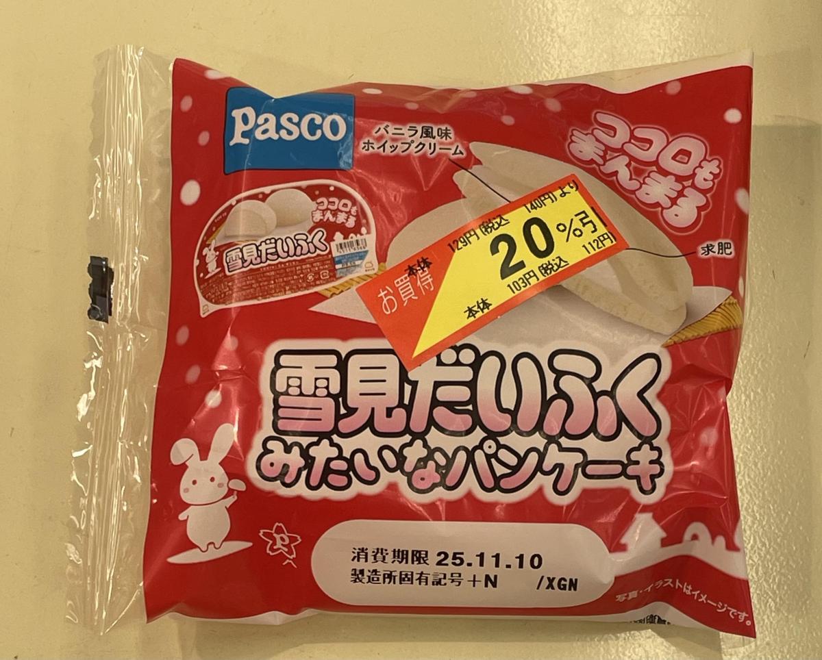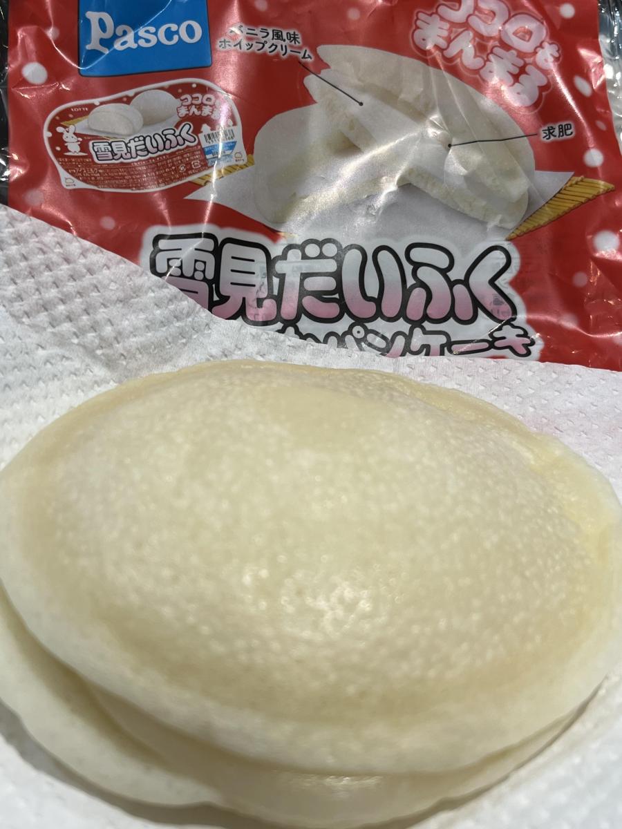 パッケージがそのまま雪見だいふくのようで目立っていたので購入してみました。パンケーキはとてももちもちしており、味わいも雪見だいふくにそっくりですね。